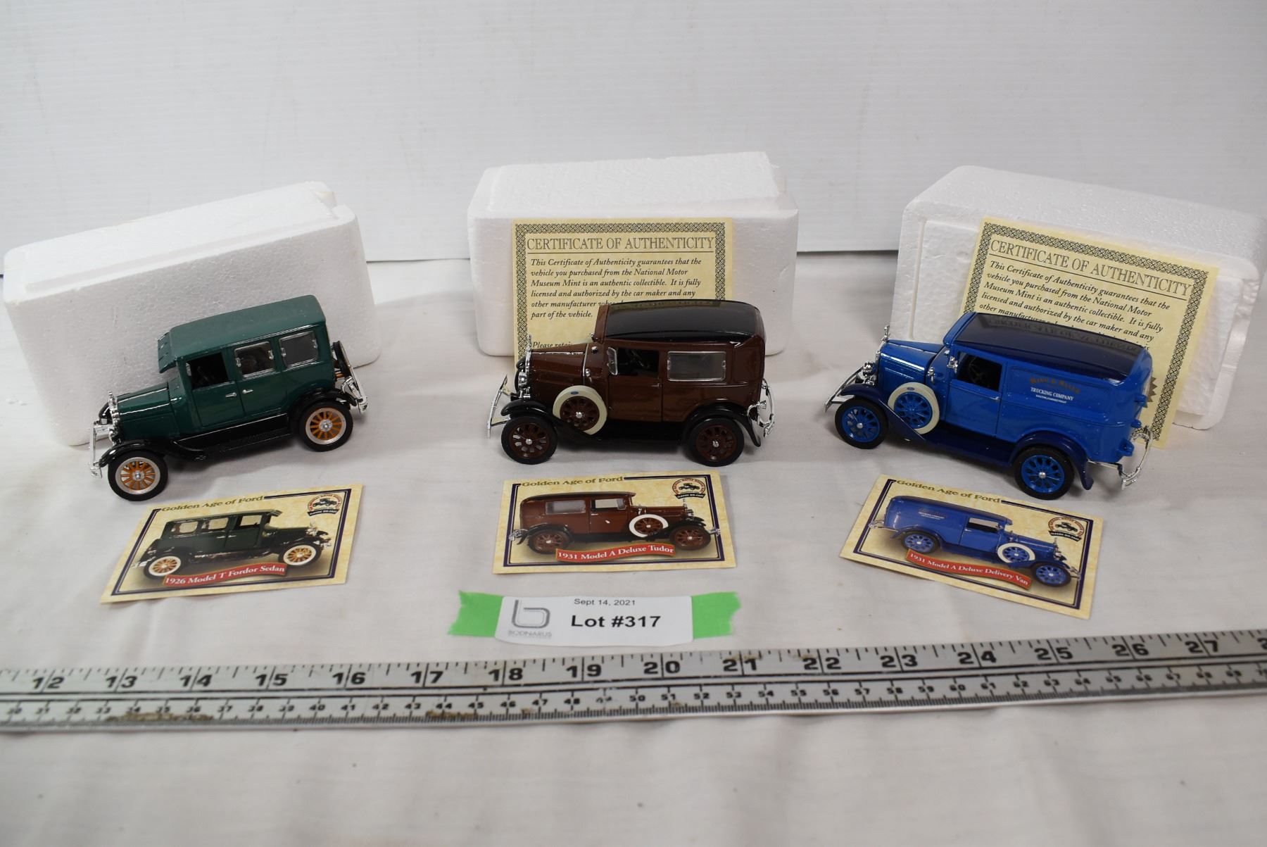 3 Model Cars. 1926 Model T Ford Sedan, 1931 Model A Deluxe Delivery Van, 1931 Model A Deluxe Tudor