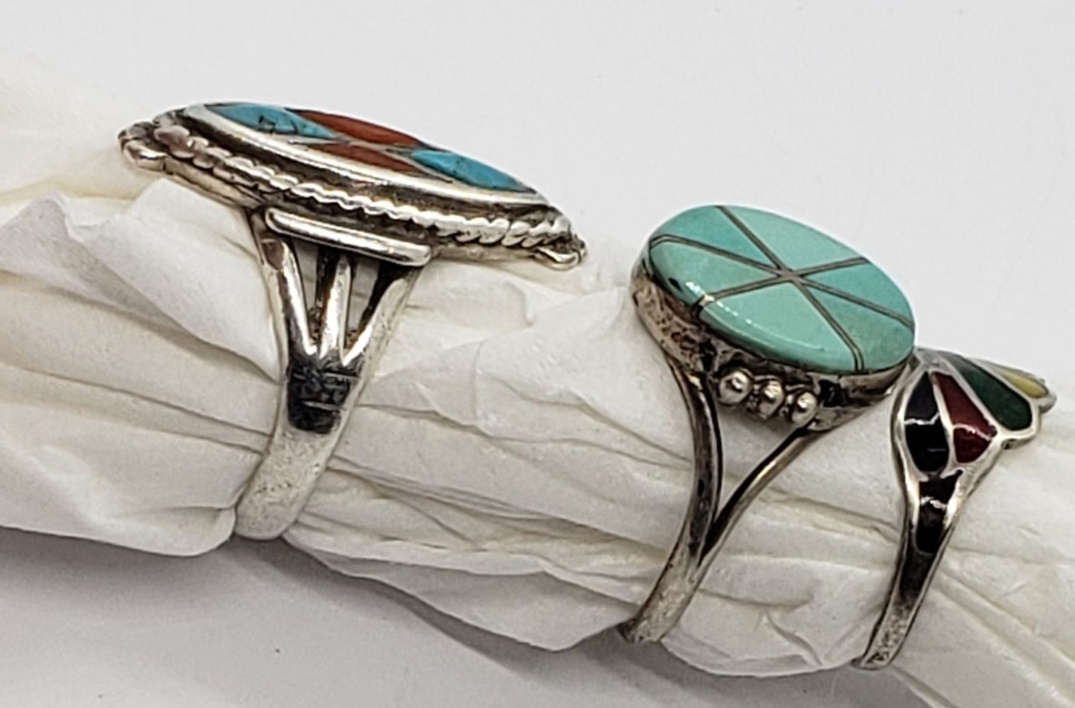 RED CORAL-TURQUOISE-BLACK ONYX. TOTAL 5.6 DWT. VARIOUS SIZES 4.5-8