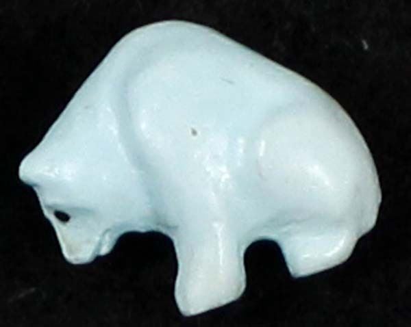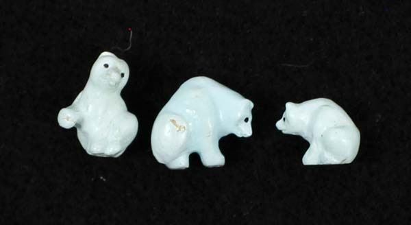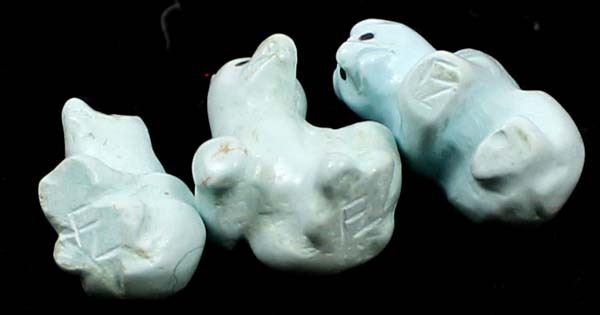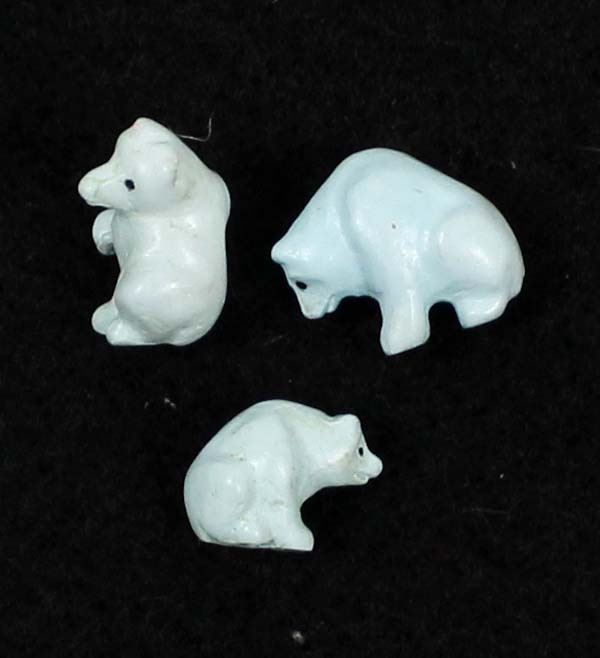 3 Native American Zuni Miniature Turquoise Bear Fetishes by Fred Bowannie, largest measures .5''H, artist's initials on the bottom