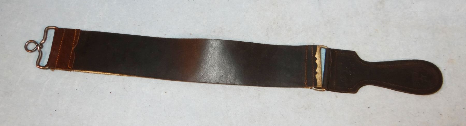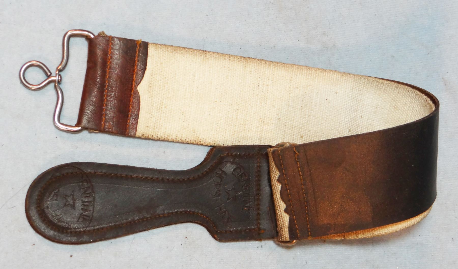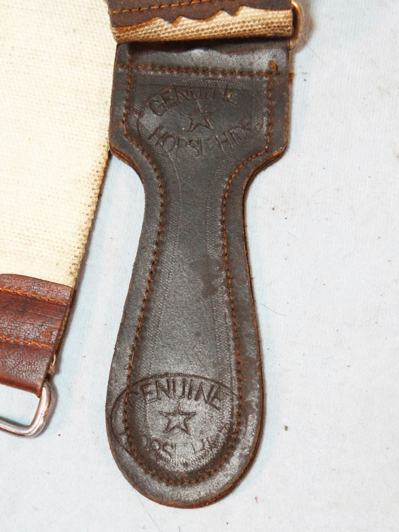 3 assorted pcs: Al Furstnow harness strap, unmarked horse hide razor strop and Boss corn husker