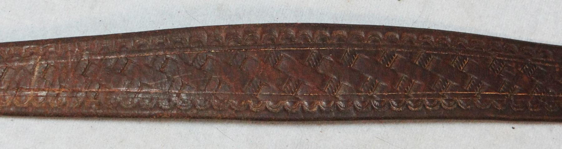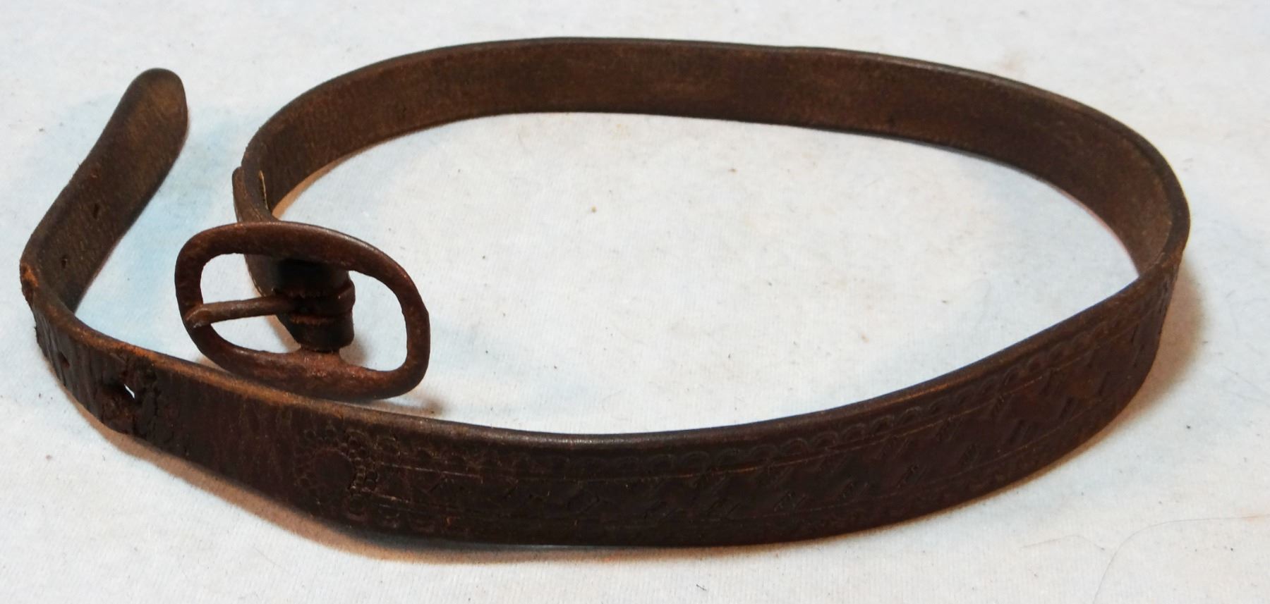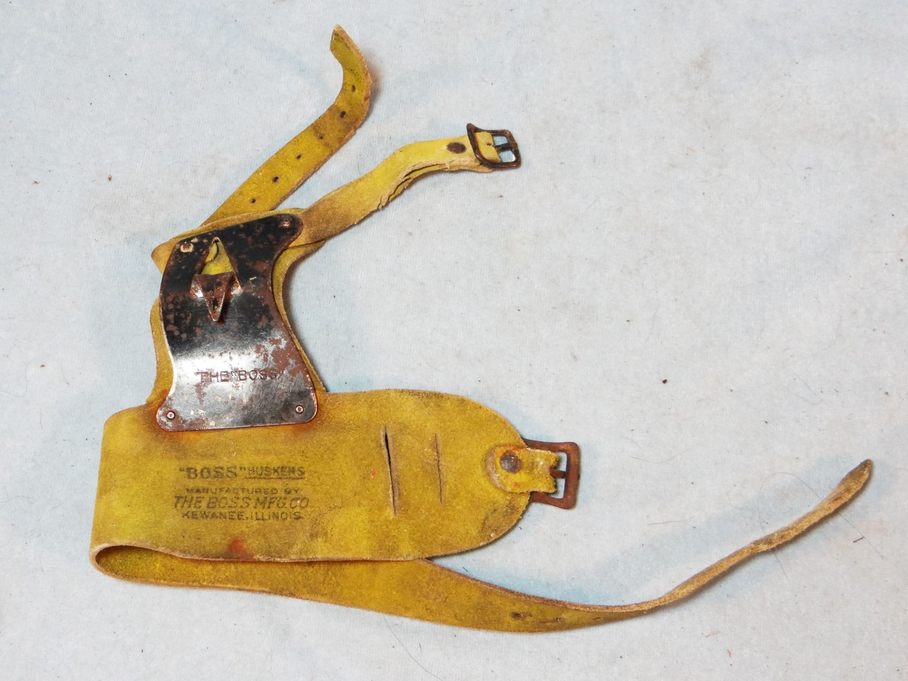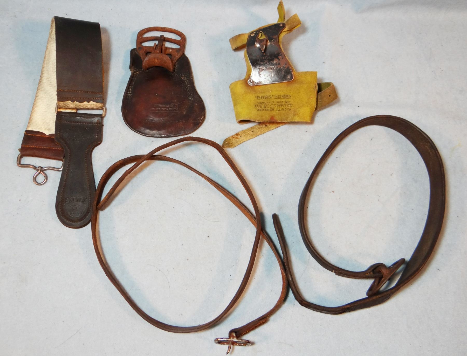 3 assorted pcs: Al Furstnow harness strap, unmarked horse hide razor strop and Boss corn husker