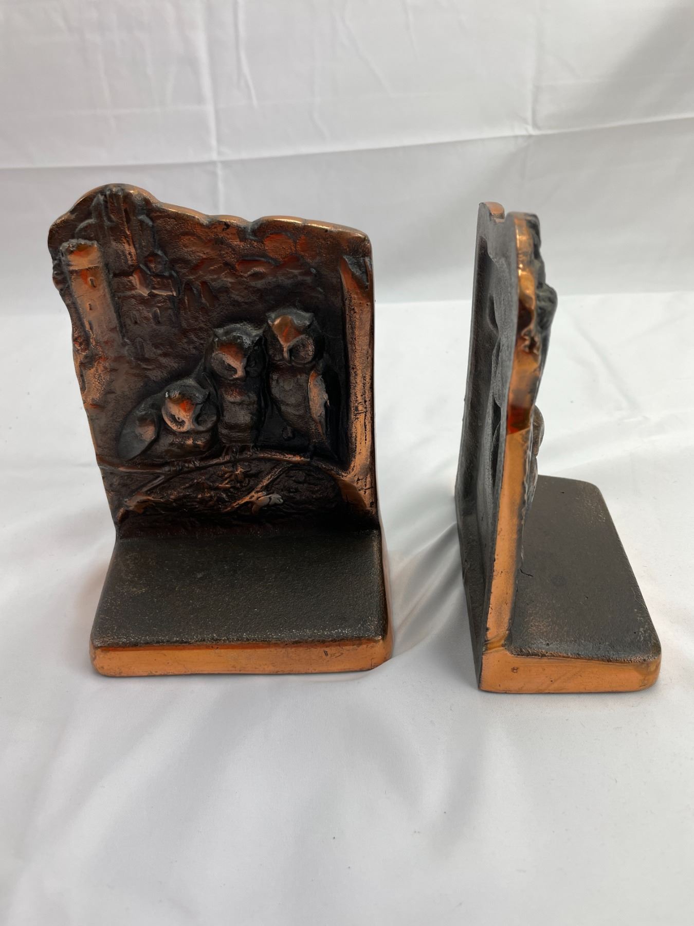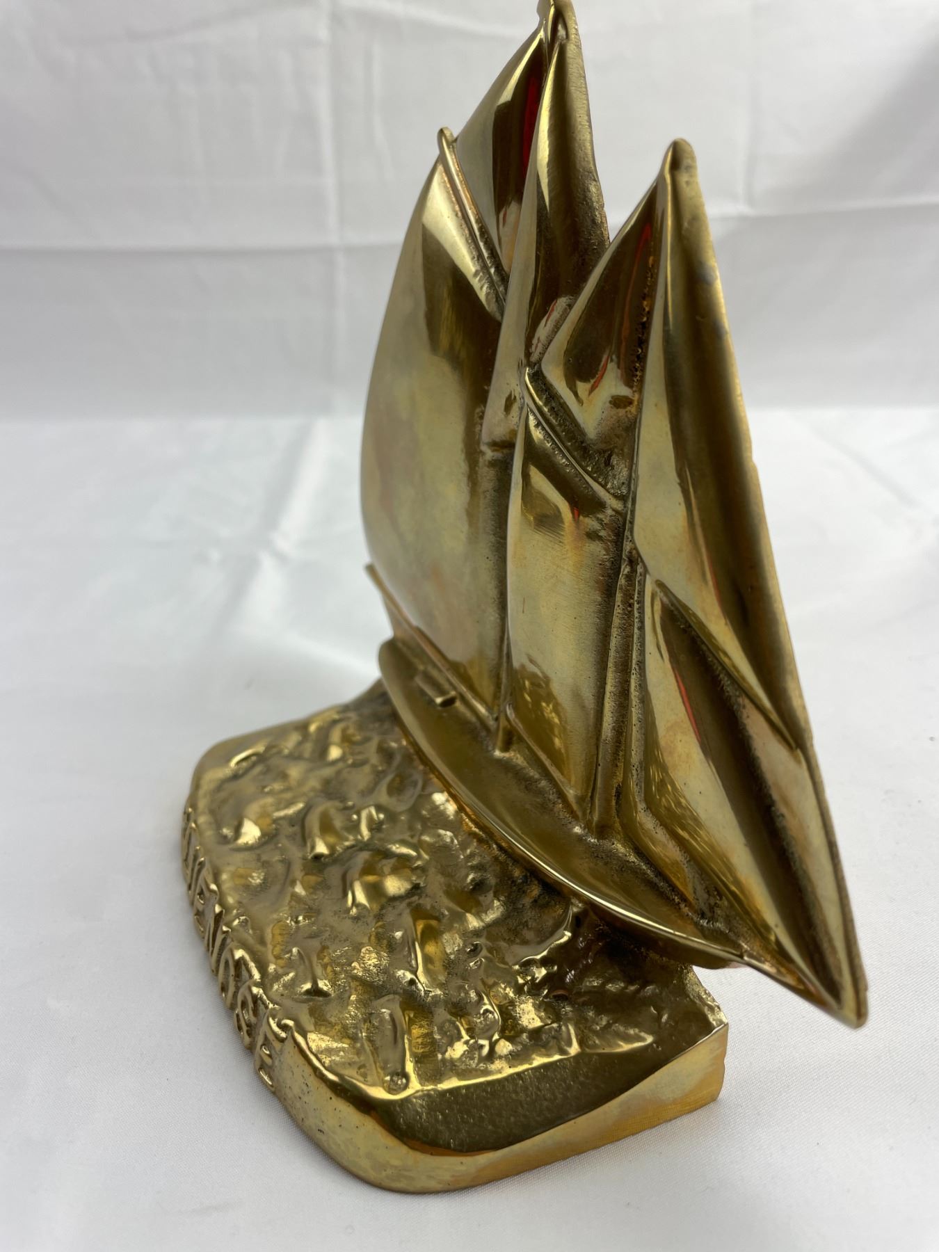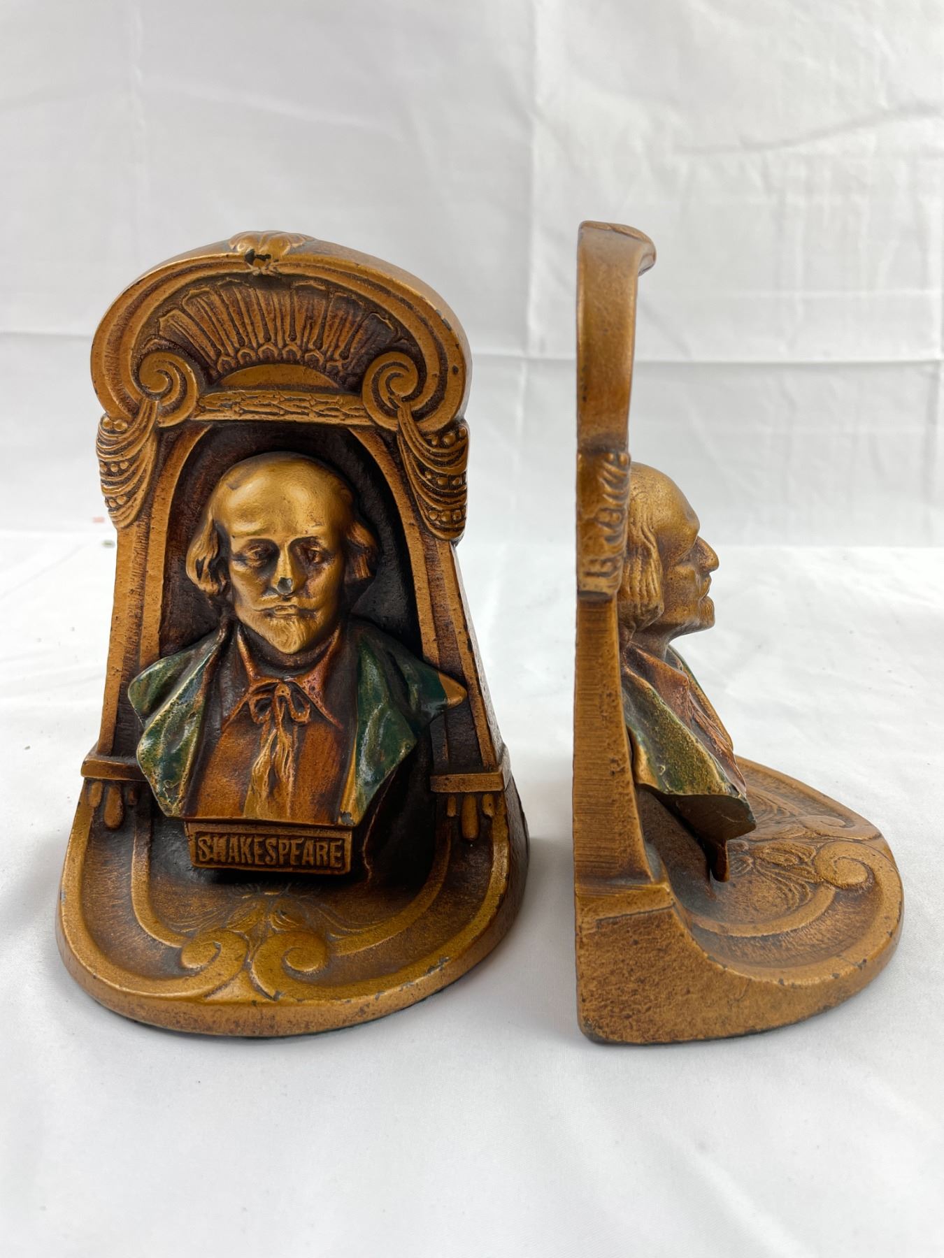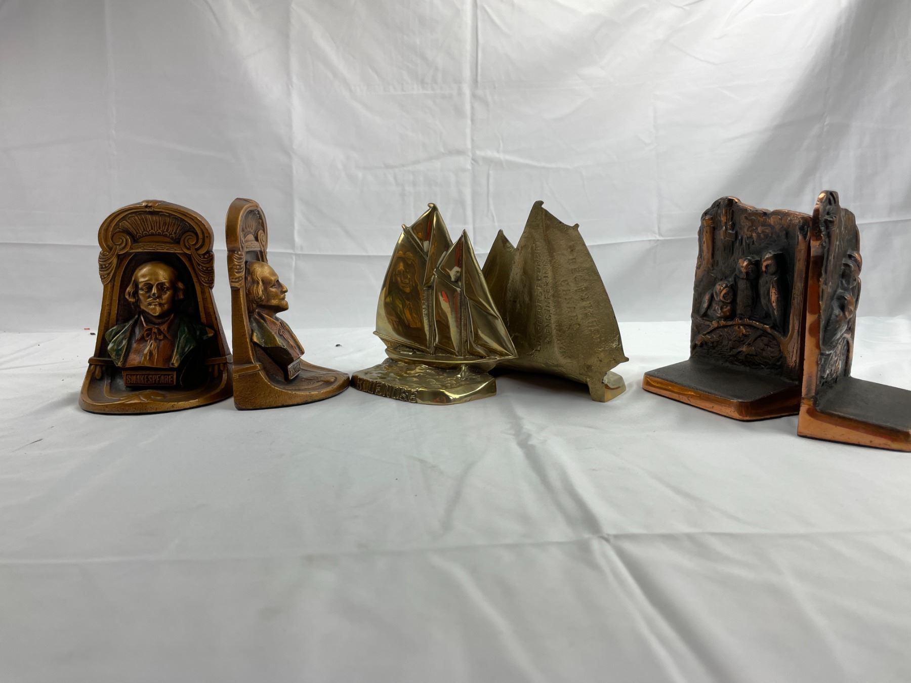 Includes Shakespeare bookends dimensions 6.5" height x 4.5" wide - each book end weighs 3 lbs 12 oz. Bluenose sail boat bookends dimensions 6" height x 6.5" wide - each bookend weighs 1 lb 15 oz. Owl bookends dimensions 5.5" height x 4" wide - each book end weighs 3 lbs.