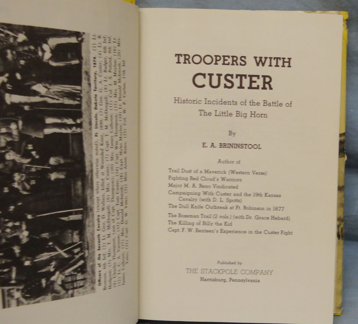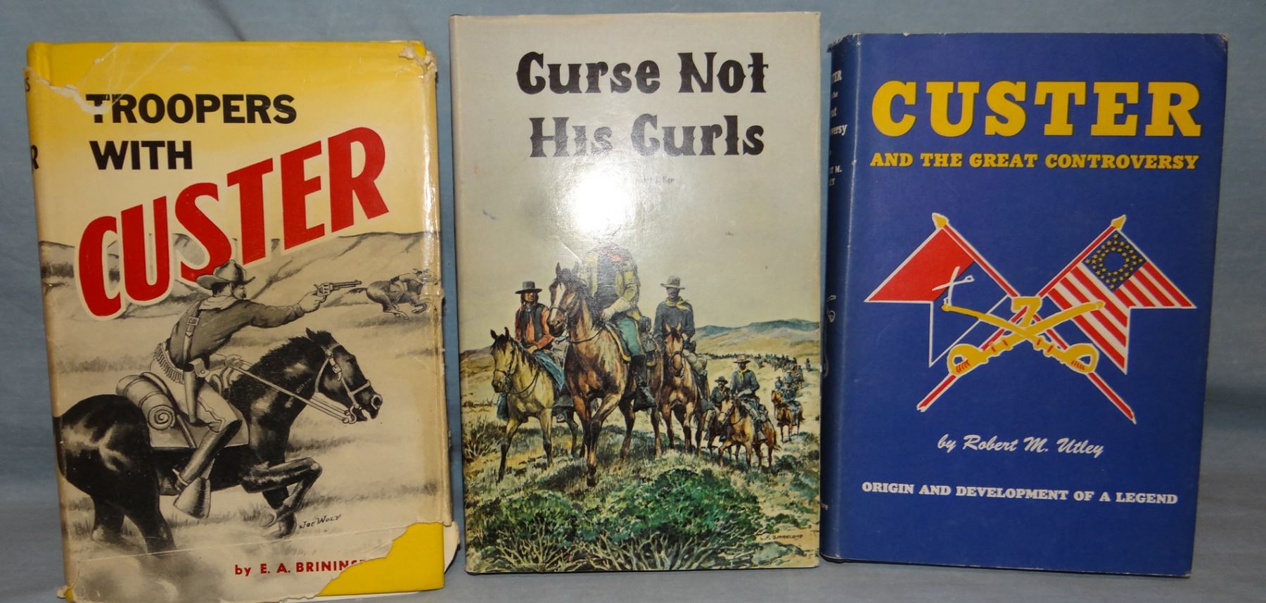 3 books on Custer, Troops With Custer, Brinningstool, 1st, signed, 1952, dj; Custer and the Great Controversy, 1st, 1962; Curse Not His Curls, 1974, 1st, signed, dj