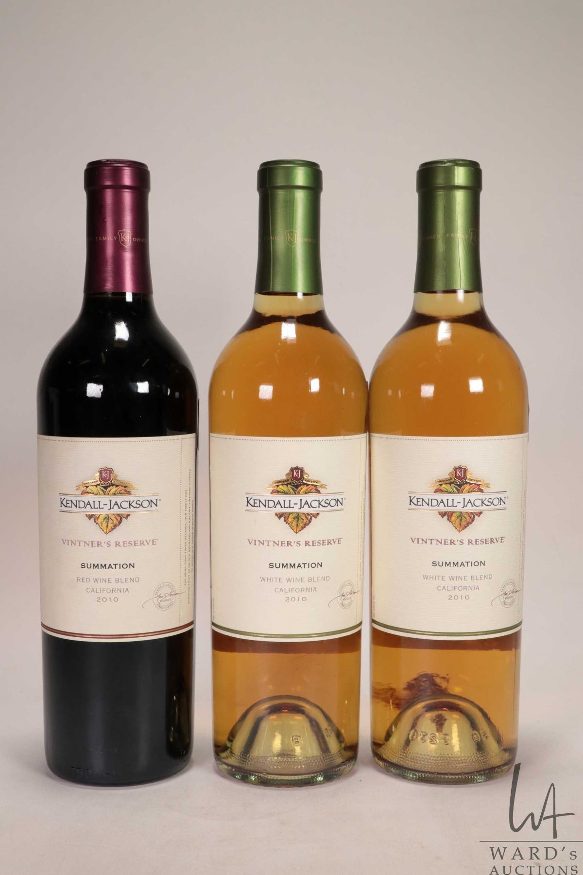 3 bottles of Kendall-Jackson / Vintner's Reserve including a bottle of Summation / Red Wine Blend / 750 ml / 13.5% ABV, and 2 bottles of Summation / White Wine Blend / 750ml / 13.7% ABV Note: Alcohol cannot be insured by any courier in Canada. Local pick up is recommended. Canadian bidders only