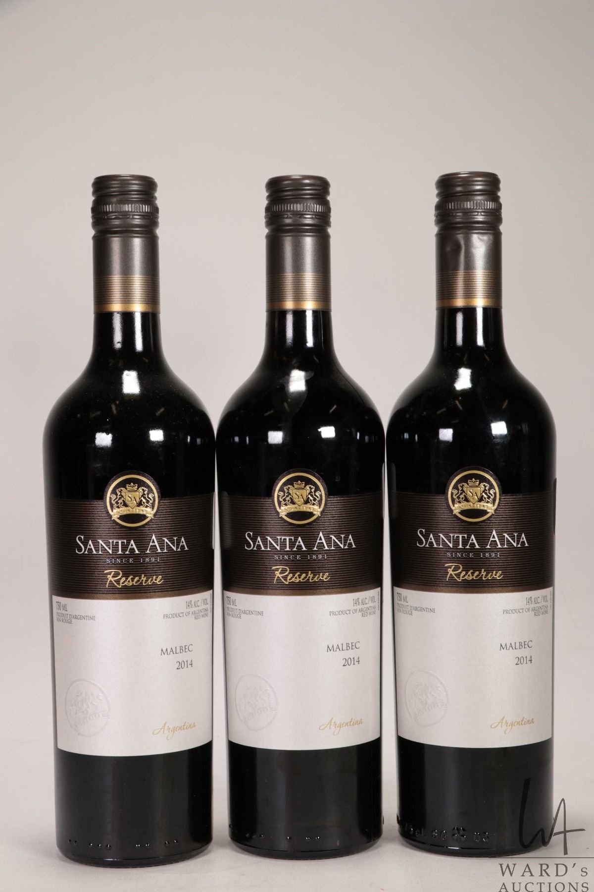 3 bottles of Santa Ana / Reserve / Malbec / 750ml / 14% ABV Note: Alcohol cannot be insured by any c