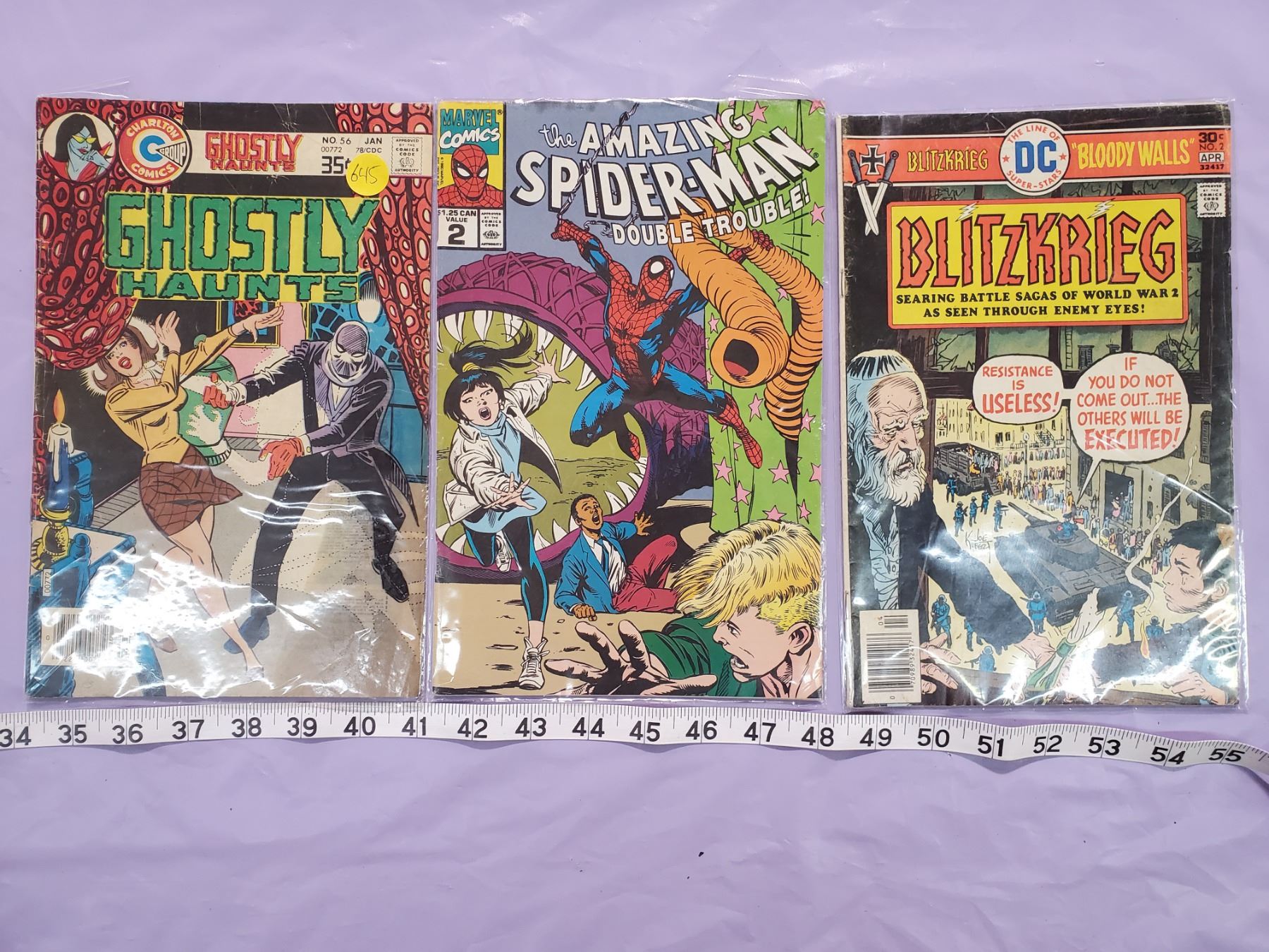 3 comic books (Ghostly haunts, Blitzkreig, The Amazing Spiderman)