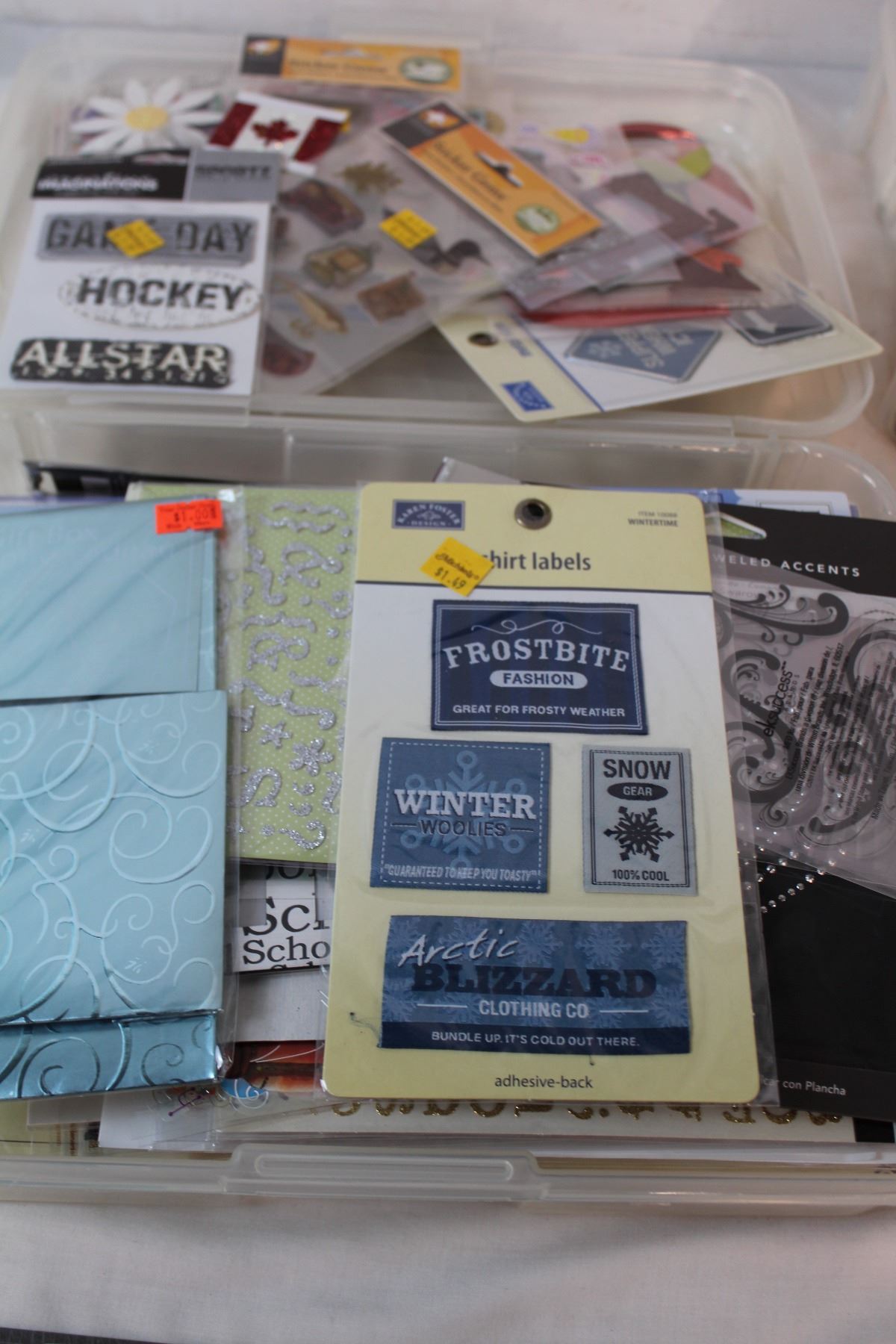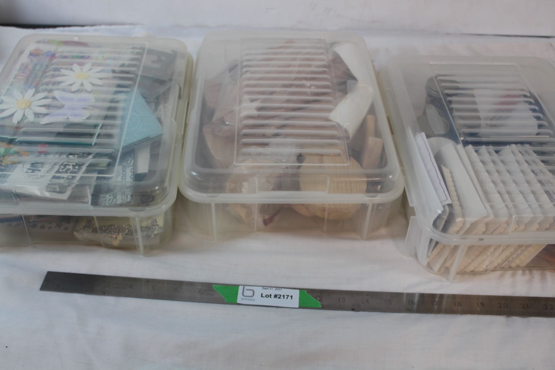 3 containers of crafting supplies