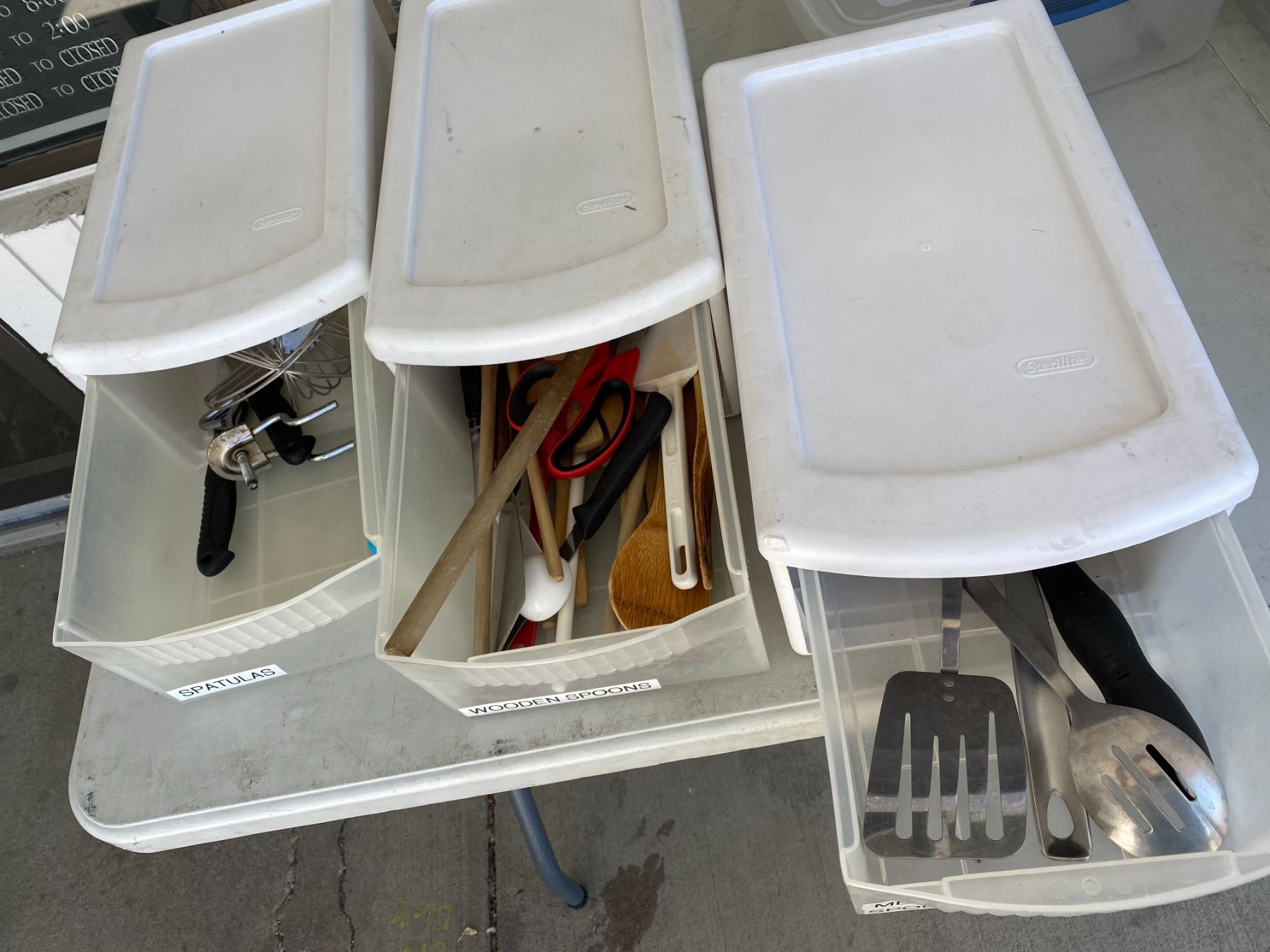3 containers of kitchen utensils