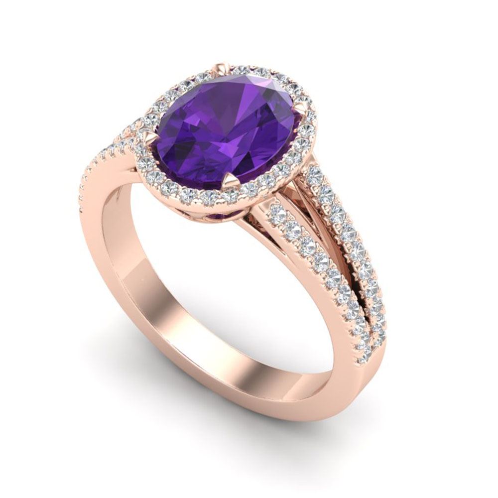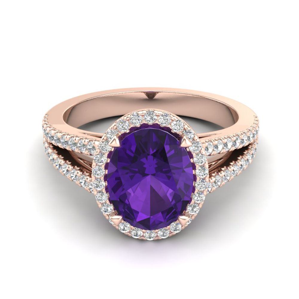 REF-49A3N - SKU: 20926 ---- 3 ctw Amethyst & Micro VS/SI Diamond Halo Ring 14k Rose Gold