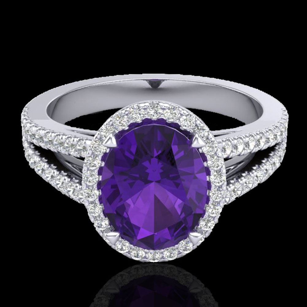 REF-52R4K - SKU: 20927 ---- 3 ctw Amethyst & Micro VS/SI Diamond Halo Ring 18k White Gold