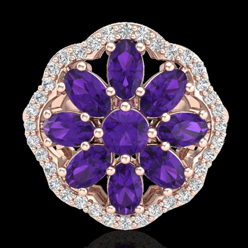 REF-49H3R - SKU: 20770 ---- 3 ctw Amethyst & VS/SI Diamond Cluster Designer Ring 10k Rose Gold