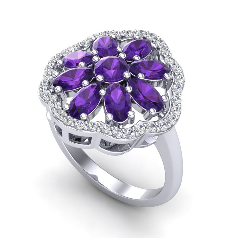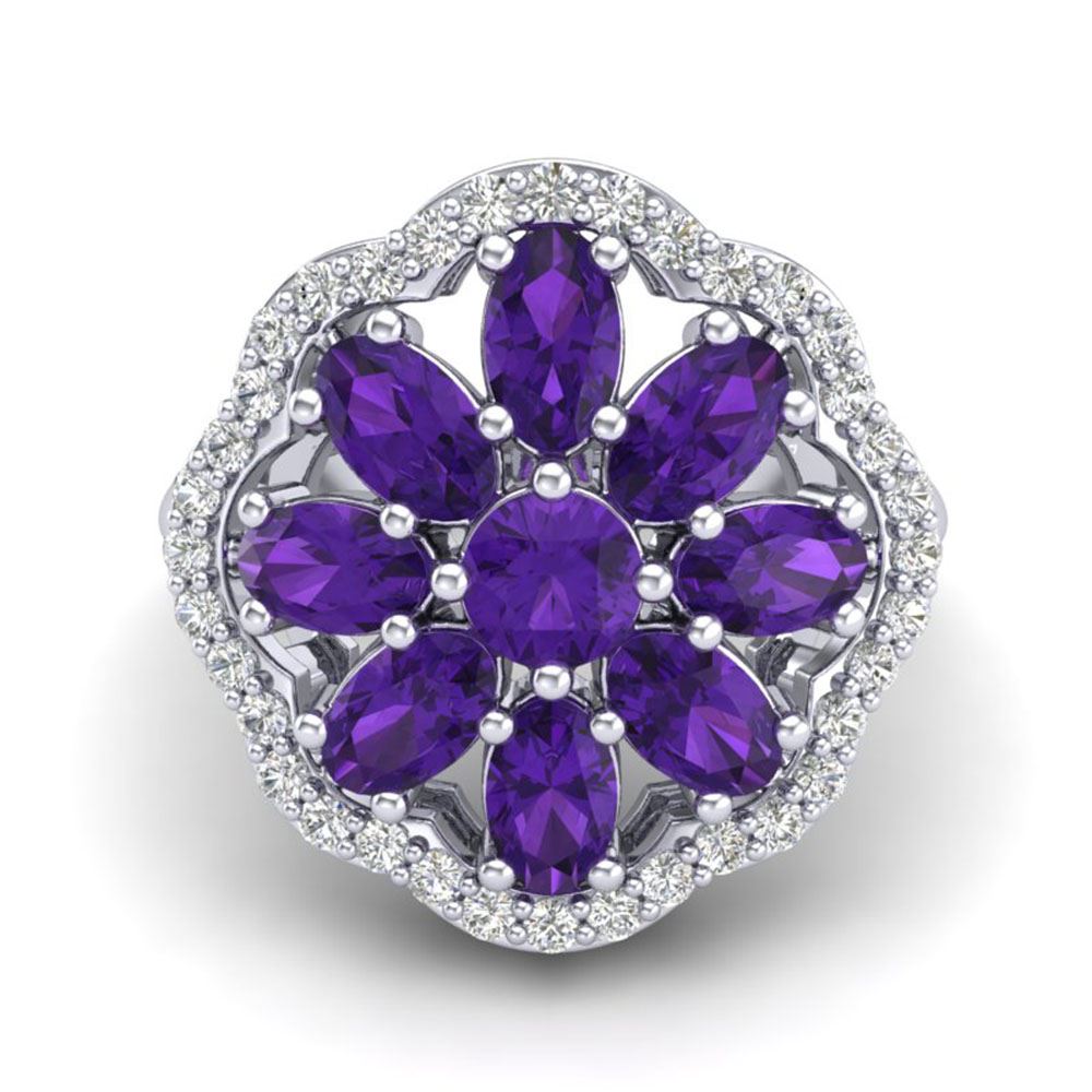 REF-49K3Y - SKU: 20771 ---- 3 ctw Amethyst & VS/SI Diamond Cluster Designer Ring 10k White Gold