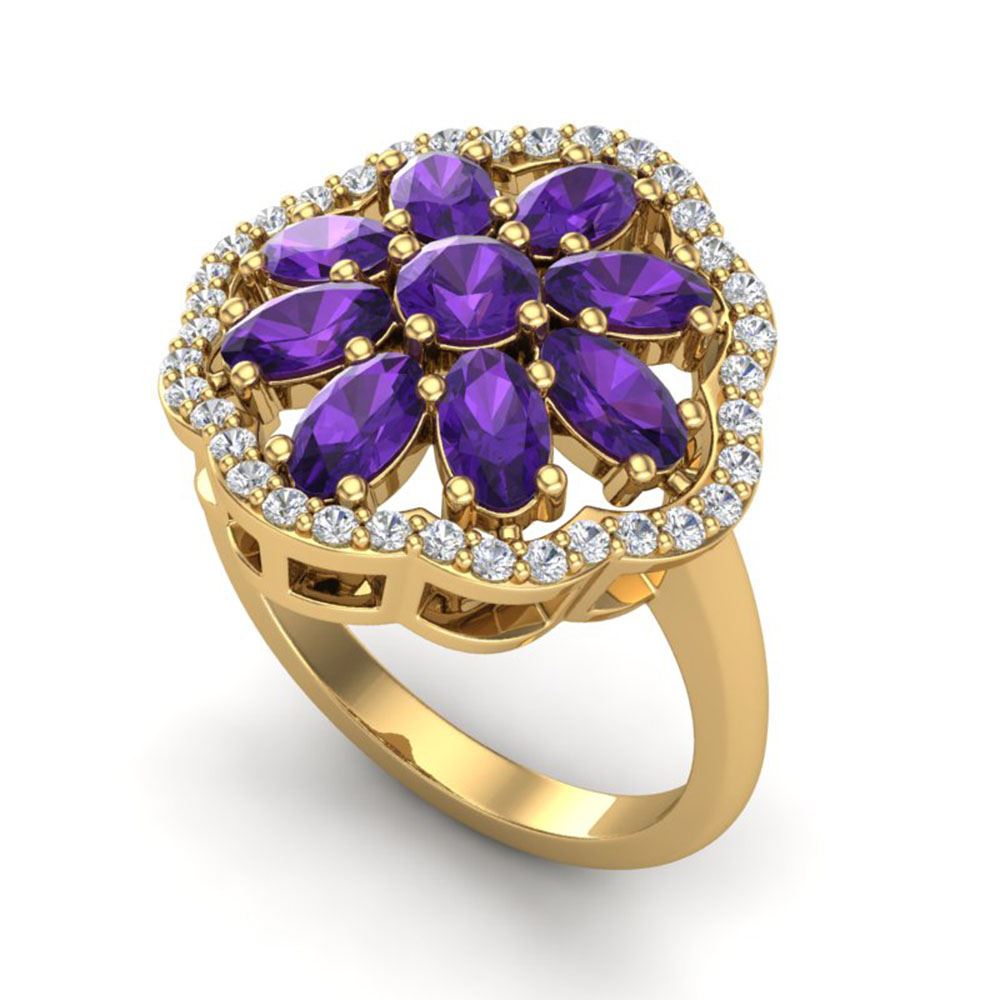 REF-49N3F - SKU: 20772 ---- 3 ctw Amethyst & VS/SI Diamond Cluster Designer Ring 10k Yellow Gold