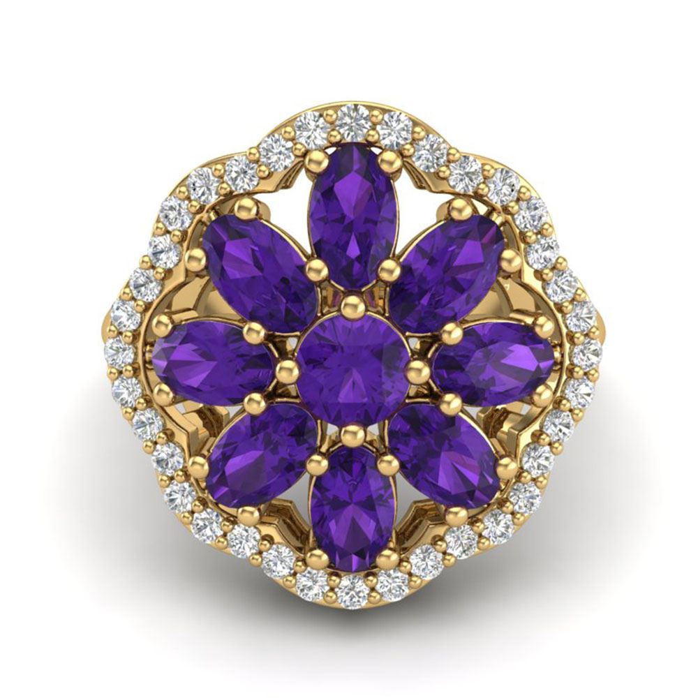 REF-49N3F - SKU: 20772 ---- 3 ctw Amethyst & VS/SI Diamond Cluster Designer Ring 10k Yellow Gold