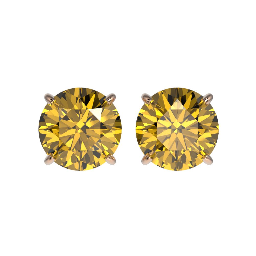 3 ctw Certified Intense Yellow Diamond Stud Earrings 10K Rose Gold