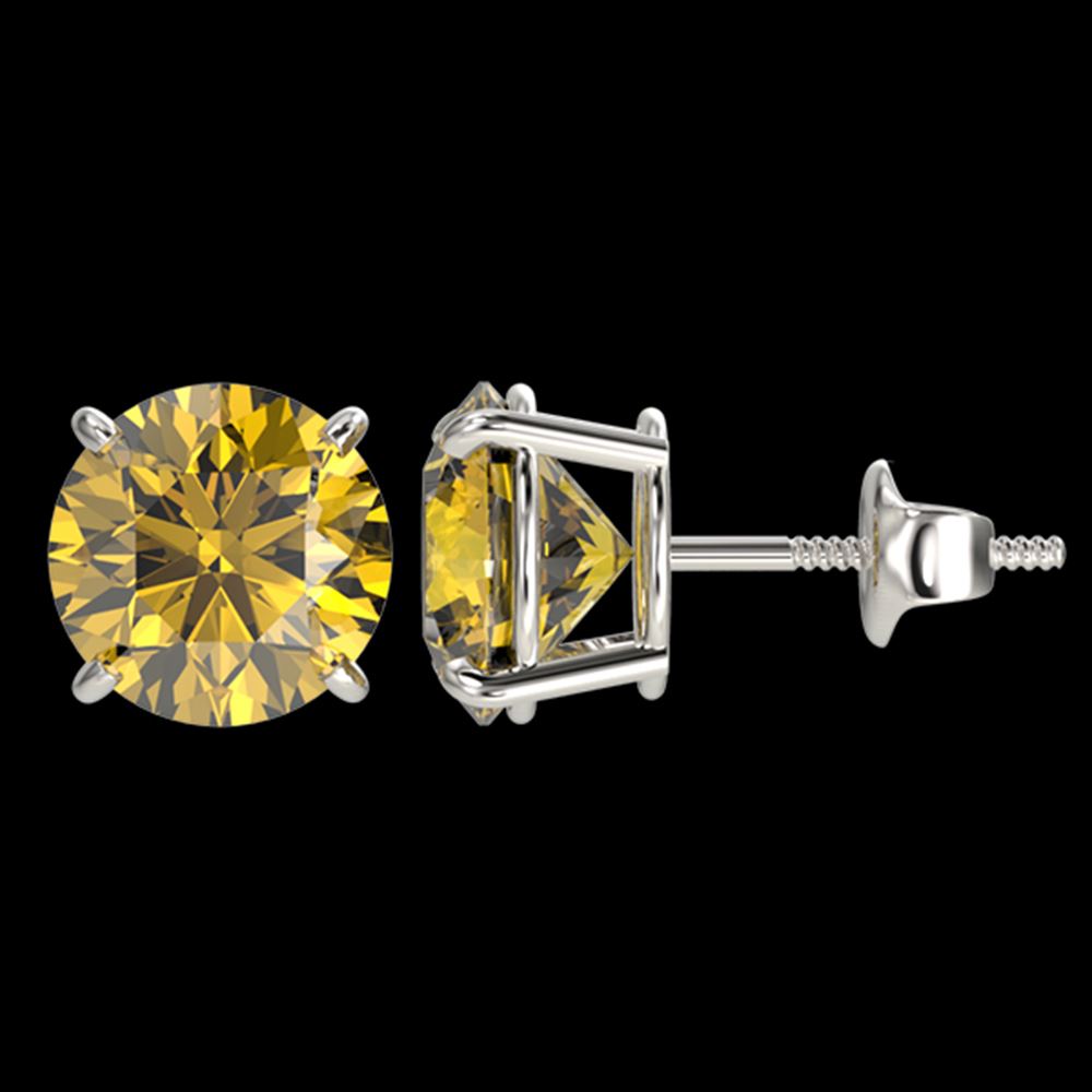 REF-527N8F - SKU: 33128 ---- 3 ctw Certified Intense Yellow Diamond Stud Earrings 10k White Gold