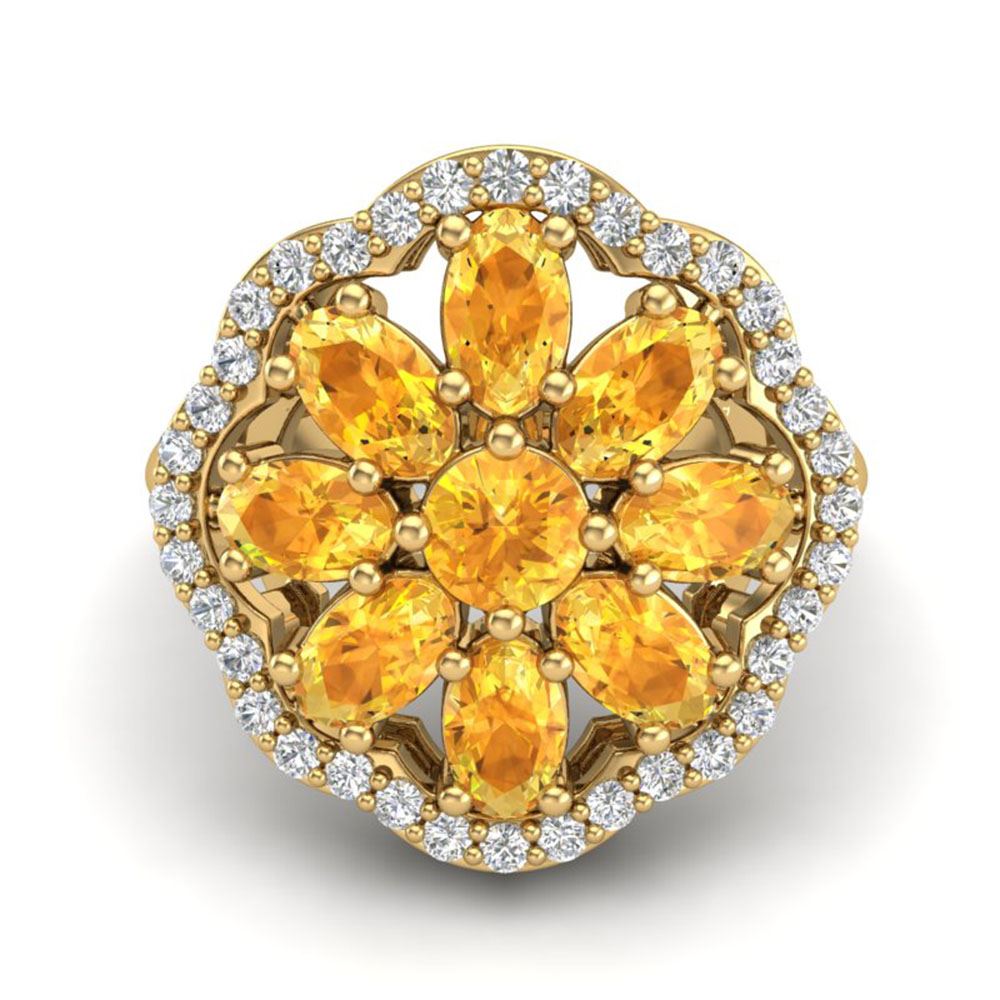 REF-49F3M - SKU: 20778 ---- 3 ctw Citrine & VS/SI Diamond Cluster Designer Ring 10k Yellow Gold
