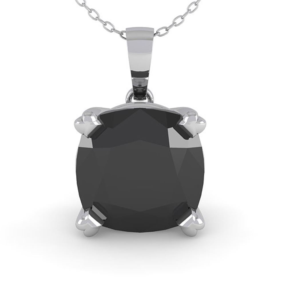 REF-65A8N - SKU: 38440 ---- 3 ctw Cushion Black Diamond Designer Necklace 14k White Gold
