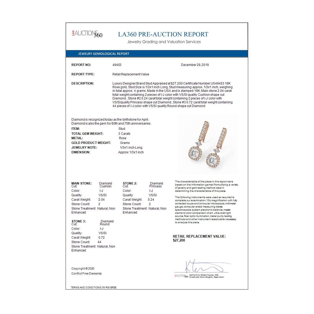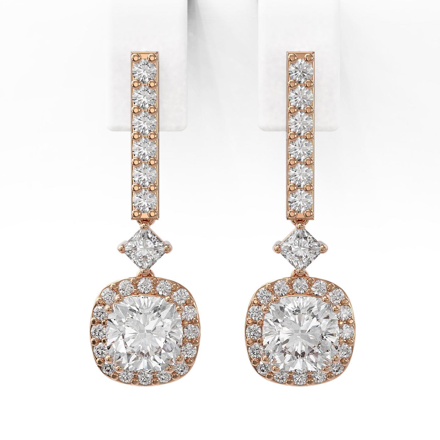 REF-617X8A - SKU: 49453 ---- 3 ctw Cushion Cut Diamond Designer Earrings 18K Rose Gold