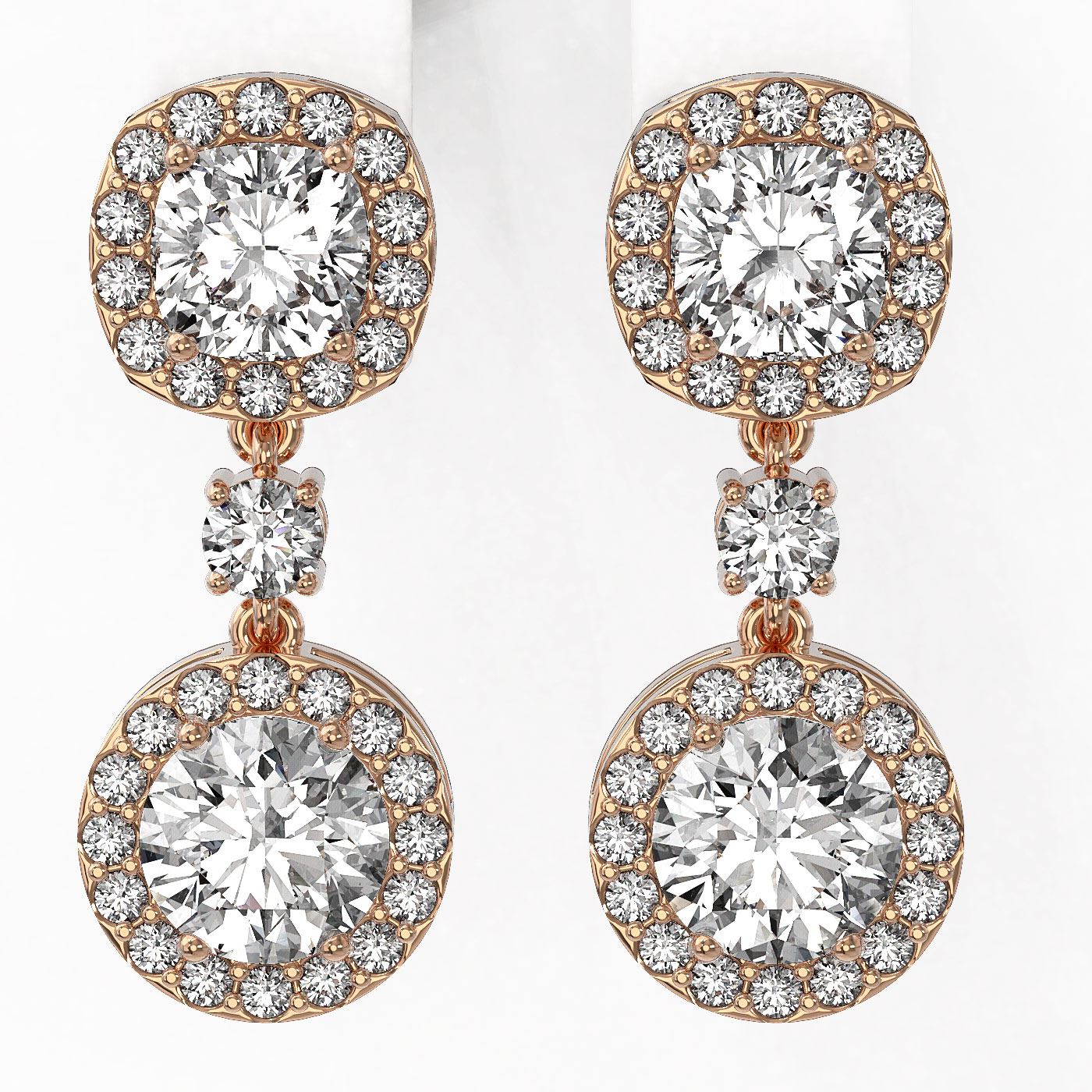 3 ctw Cushion Cut Diamond Designer Earrings 18K Rose Gold