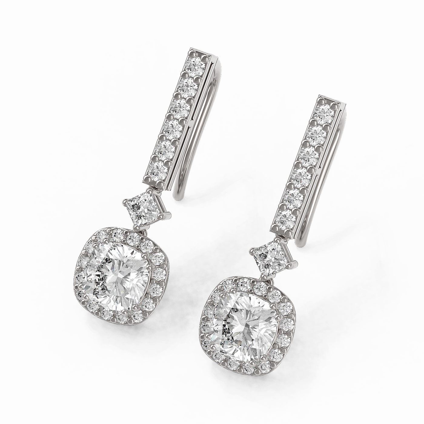 3 ctw Cushion Cut Diamond Designer Earrings 18K White Gold
