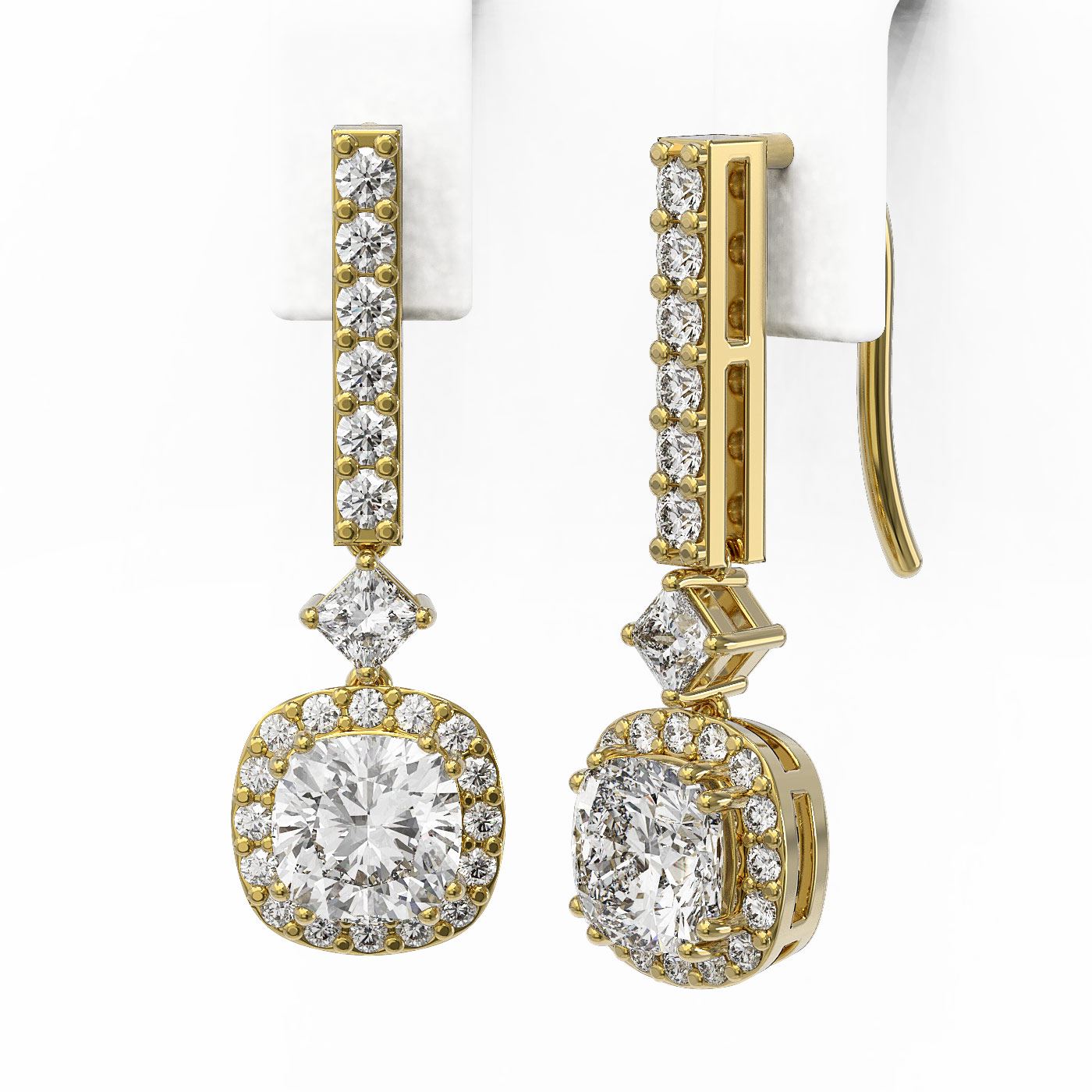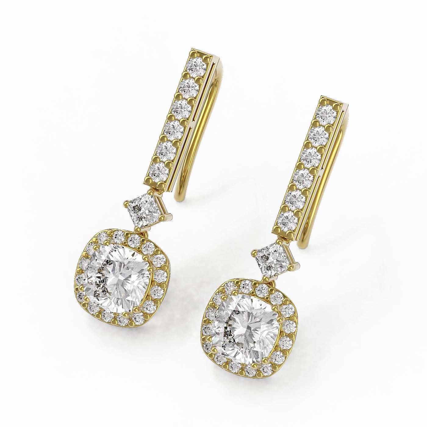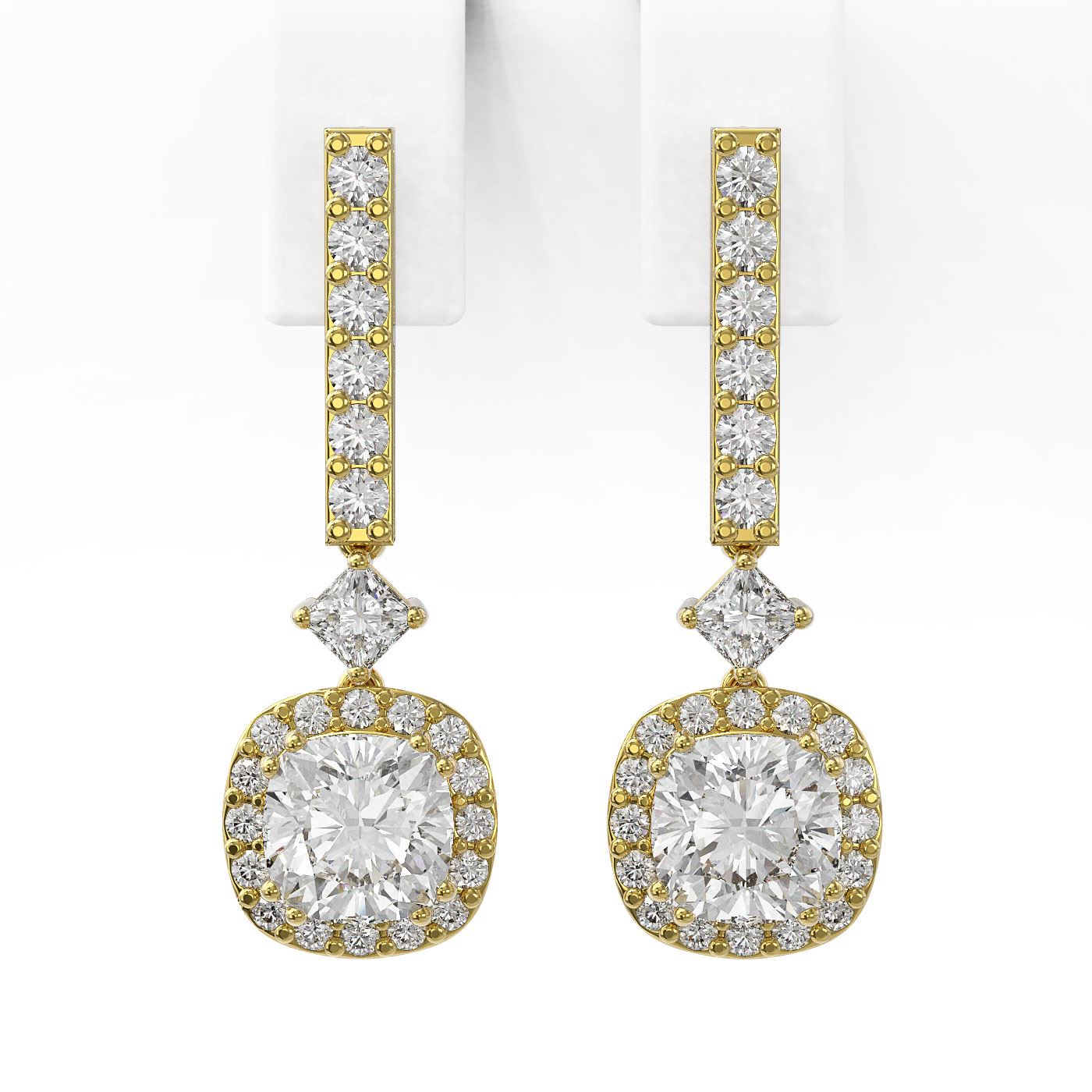 SKU: 49454 ---- 3 ctw Cushion Cut Diamond Designer Earrings 18K Yellow Gold