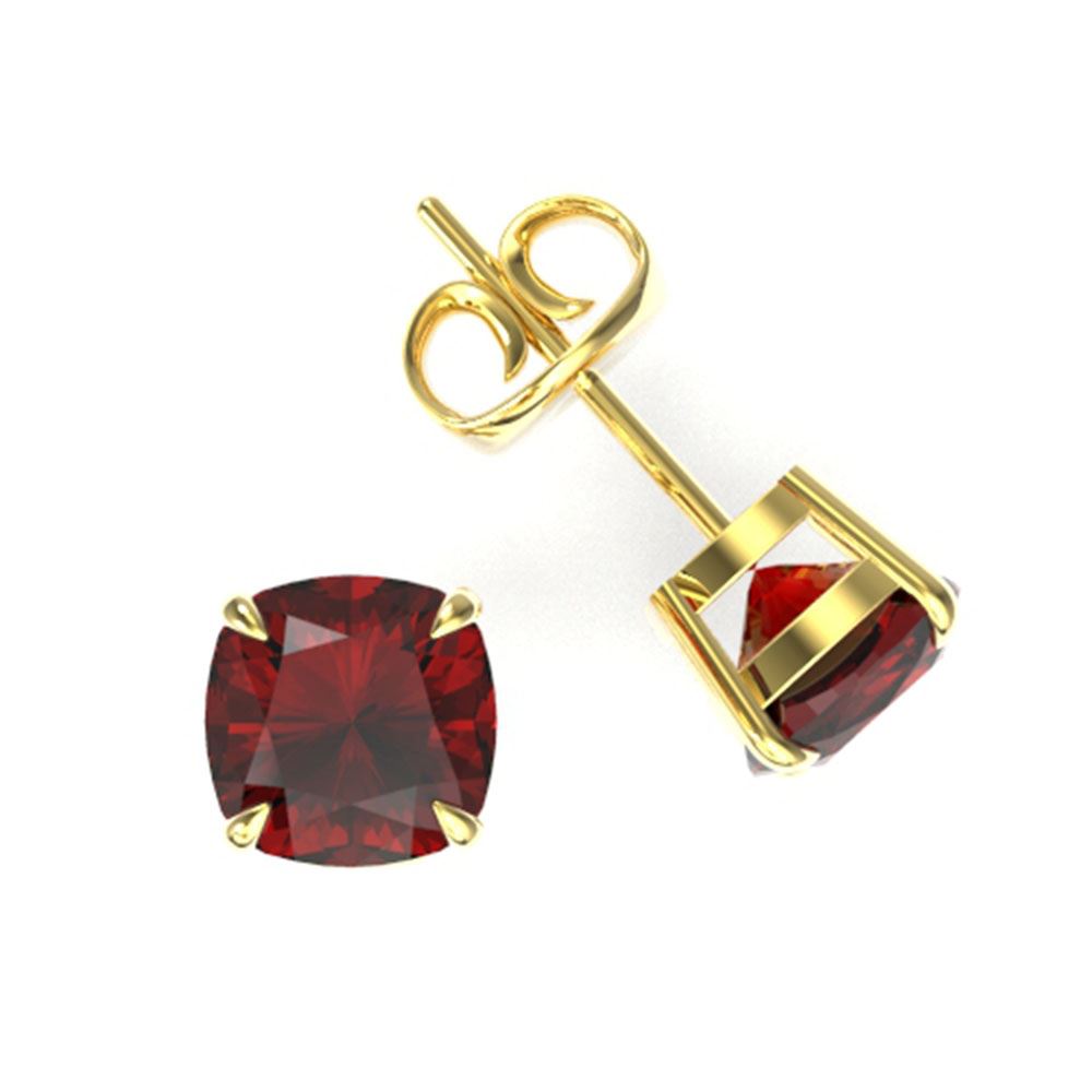 REF-17A8N - SKU: 21744 ---- 3 ctw Cushion Cut Garnet Designer Stud Earrings 18k Yellow Gold