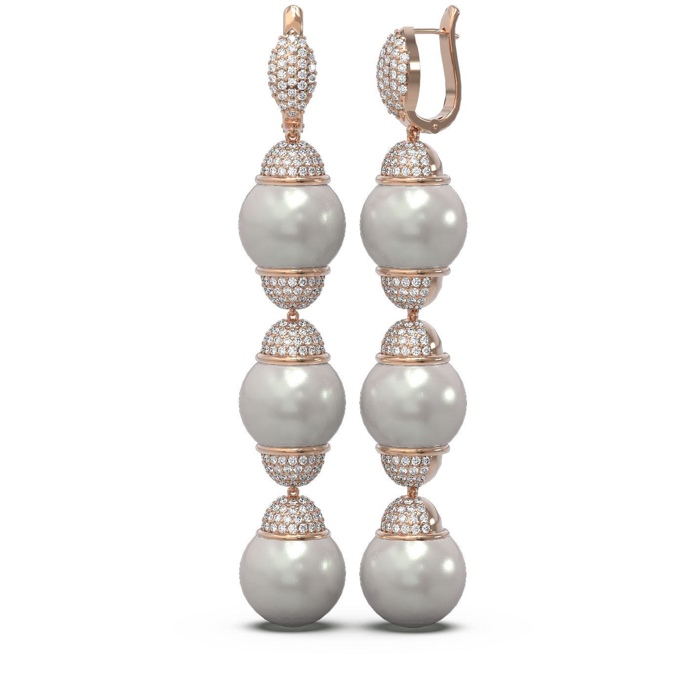 REF-358K9Y - SKU: 55389 ---- 3 ctw Diamond & Pearl Earrings 18K Rose Gold