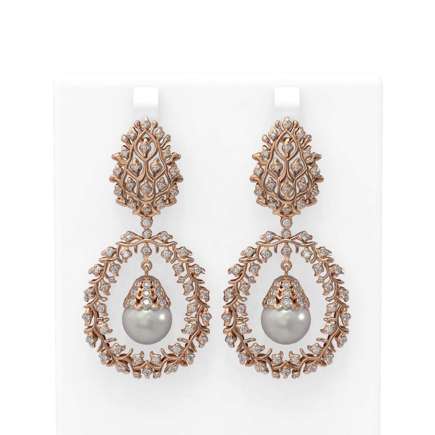 REF-367N6F - SKU: 55128 ---- 3 ctw Diamond & Pearl Earrings 18K Rose Gold