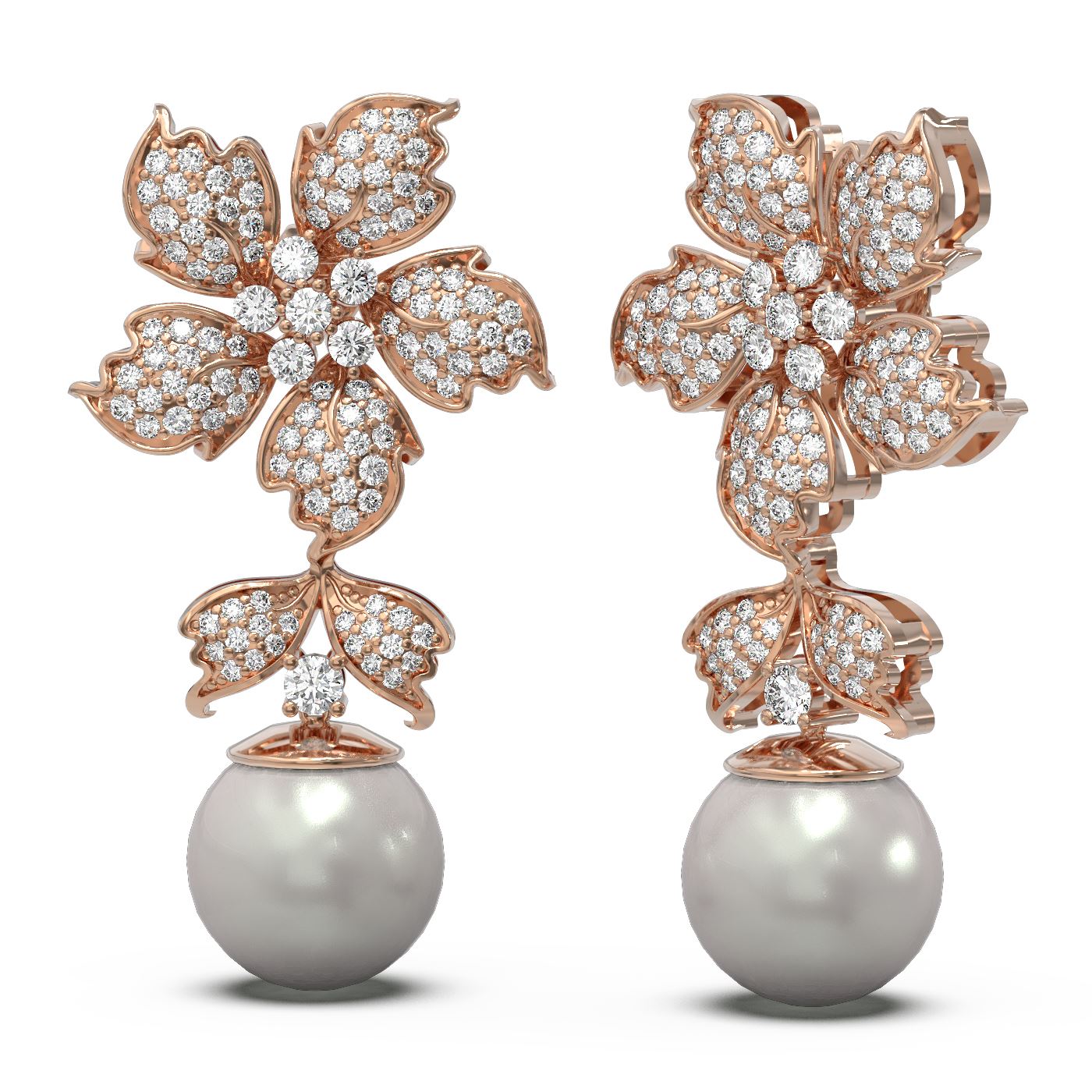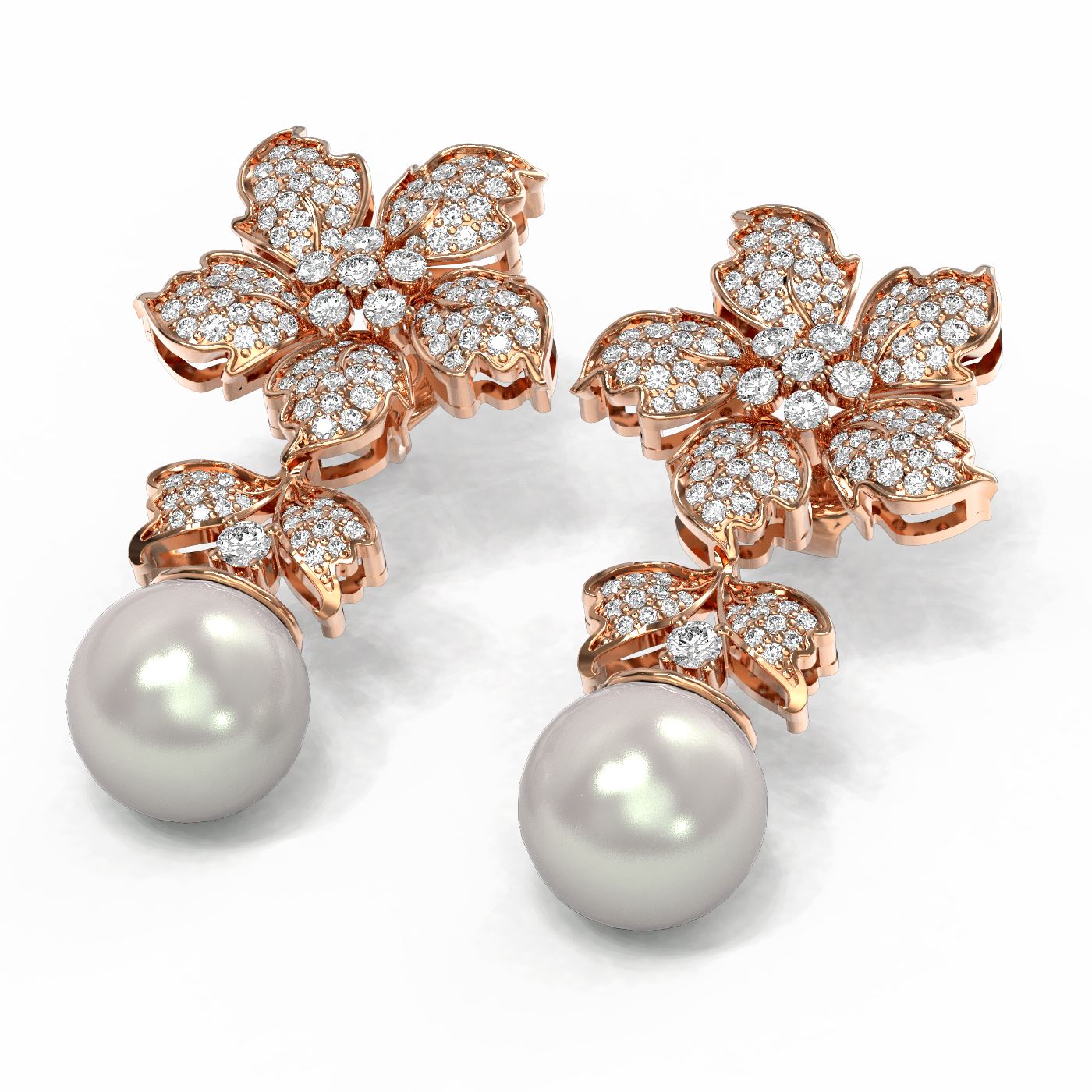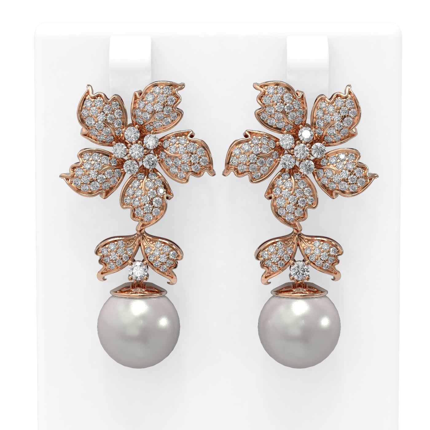 SKU: 55734 ---- 3 ctw Diamond & Pearl Earrings 18K Rose Gold