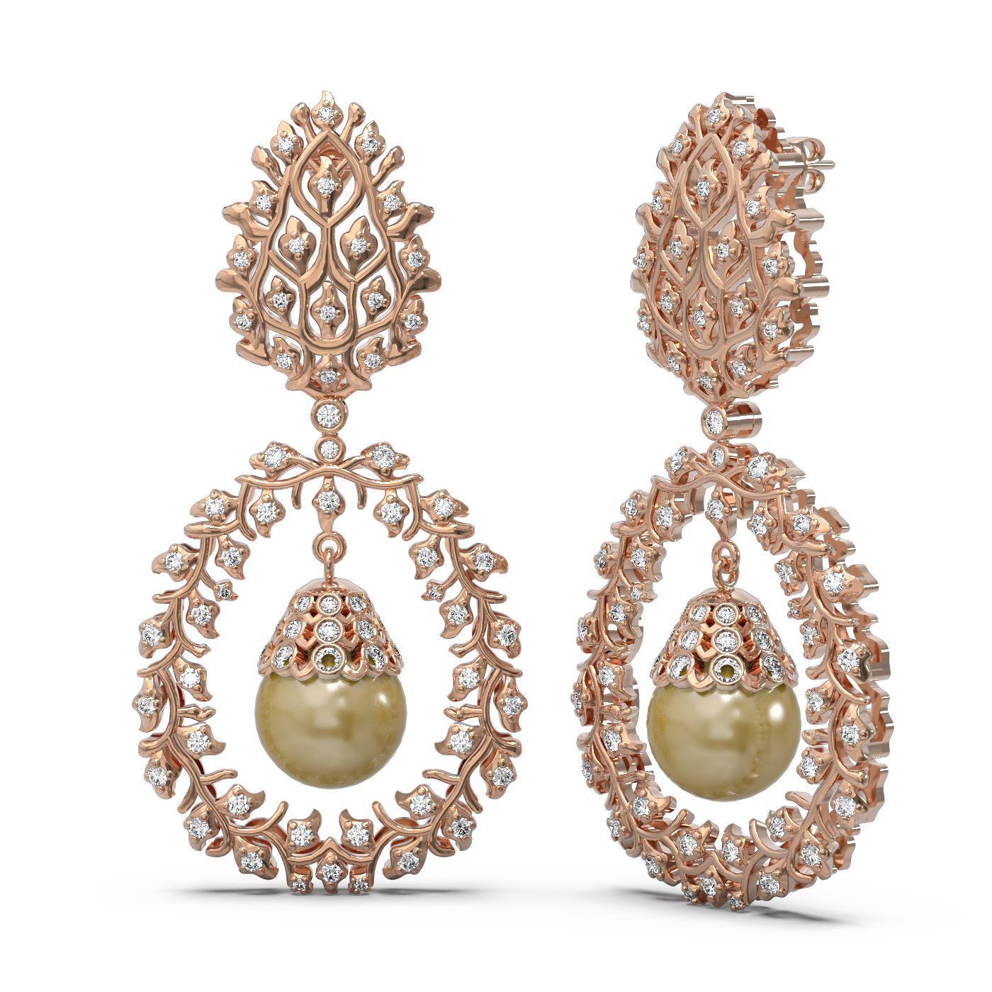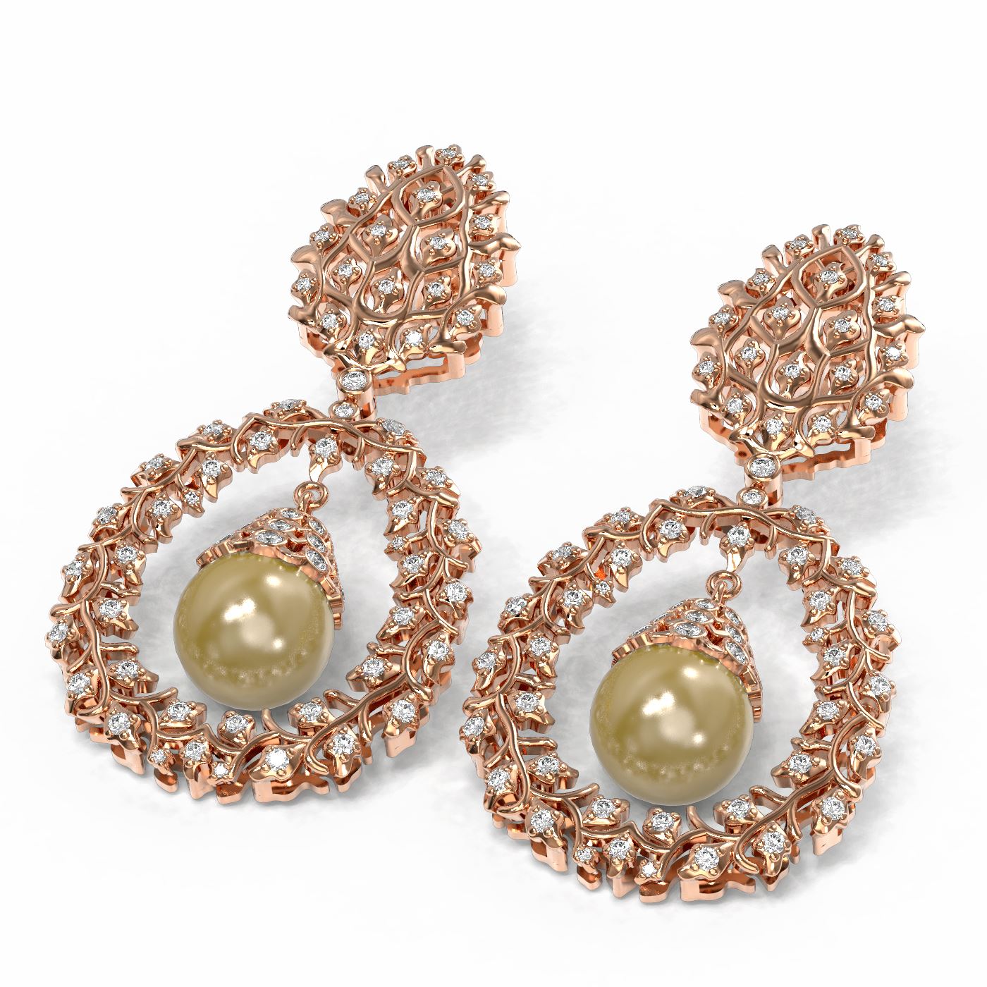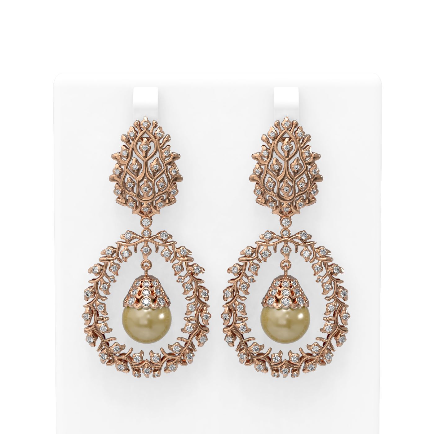 SKU: 55122 ---- 3 ctw Diamond & Pearl Earrings 18K Rose Gold
