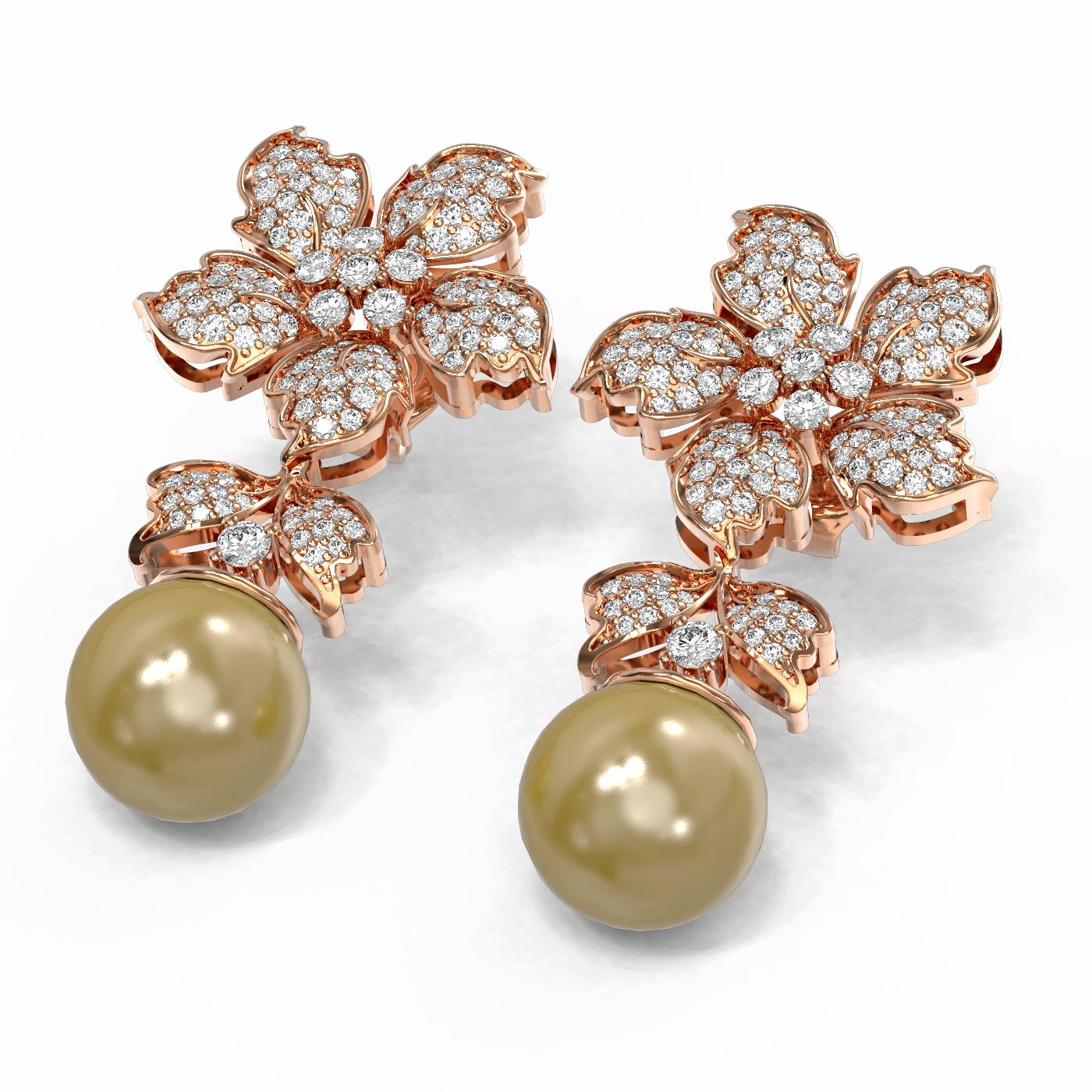 SKU: 55731 ---- 3 ctw Diamond & Pearl Earrings 18K Rose Gold