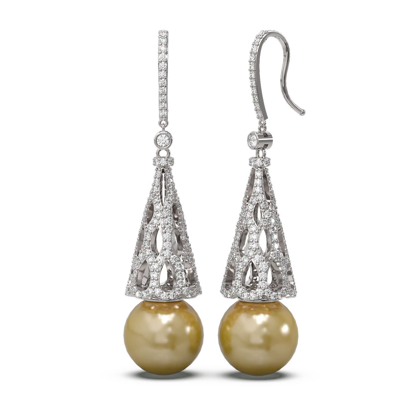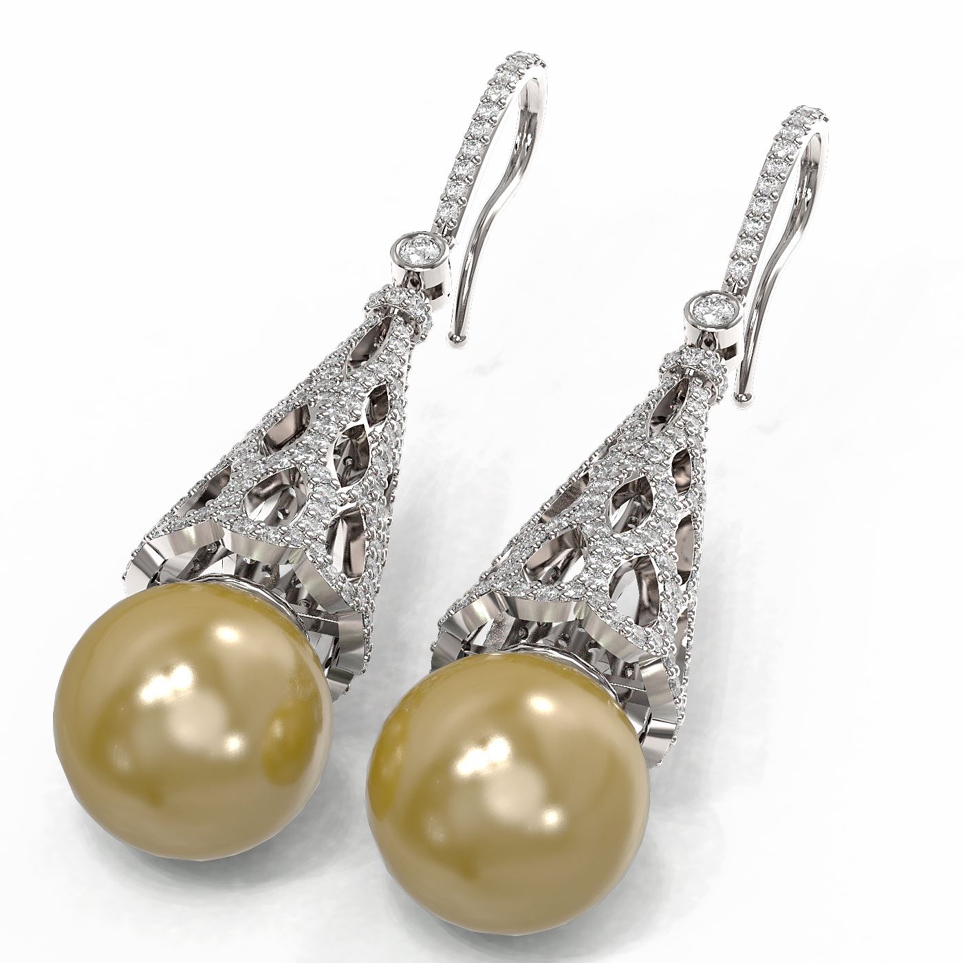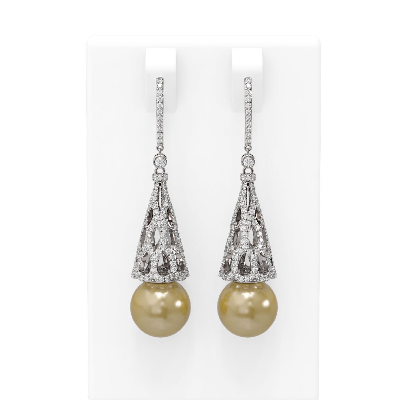 REF-290R9K - SKU: 61055 ---- 3 ctw Diamond & Pearl Earrings 18K White Gold