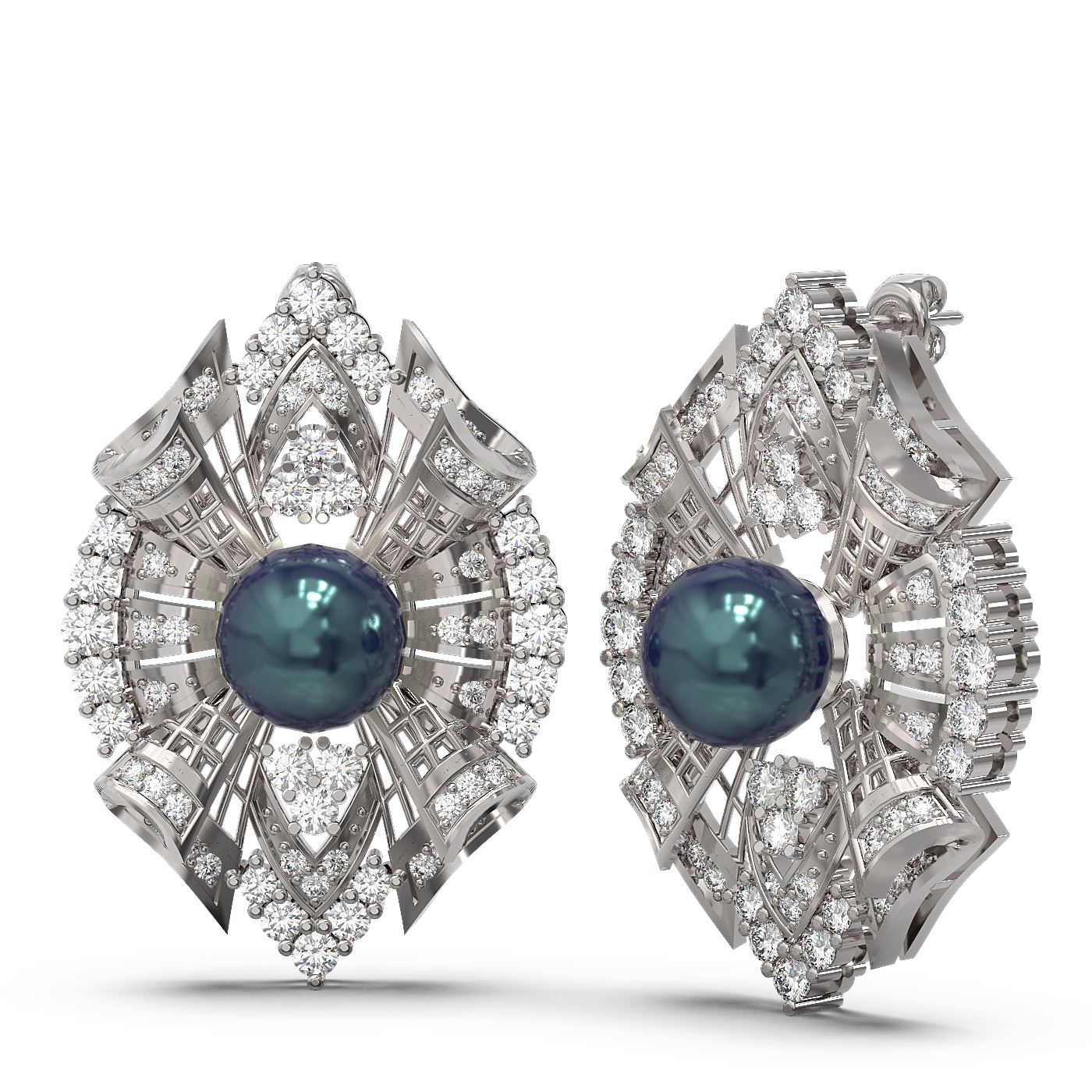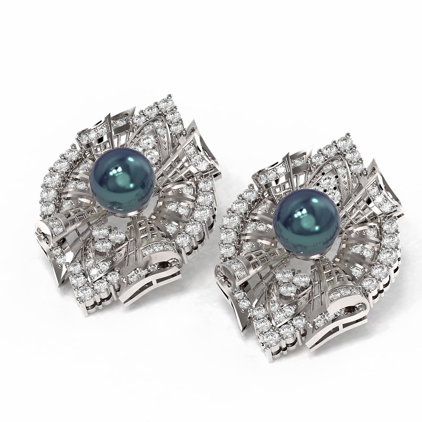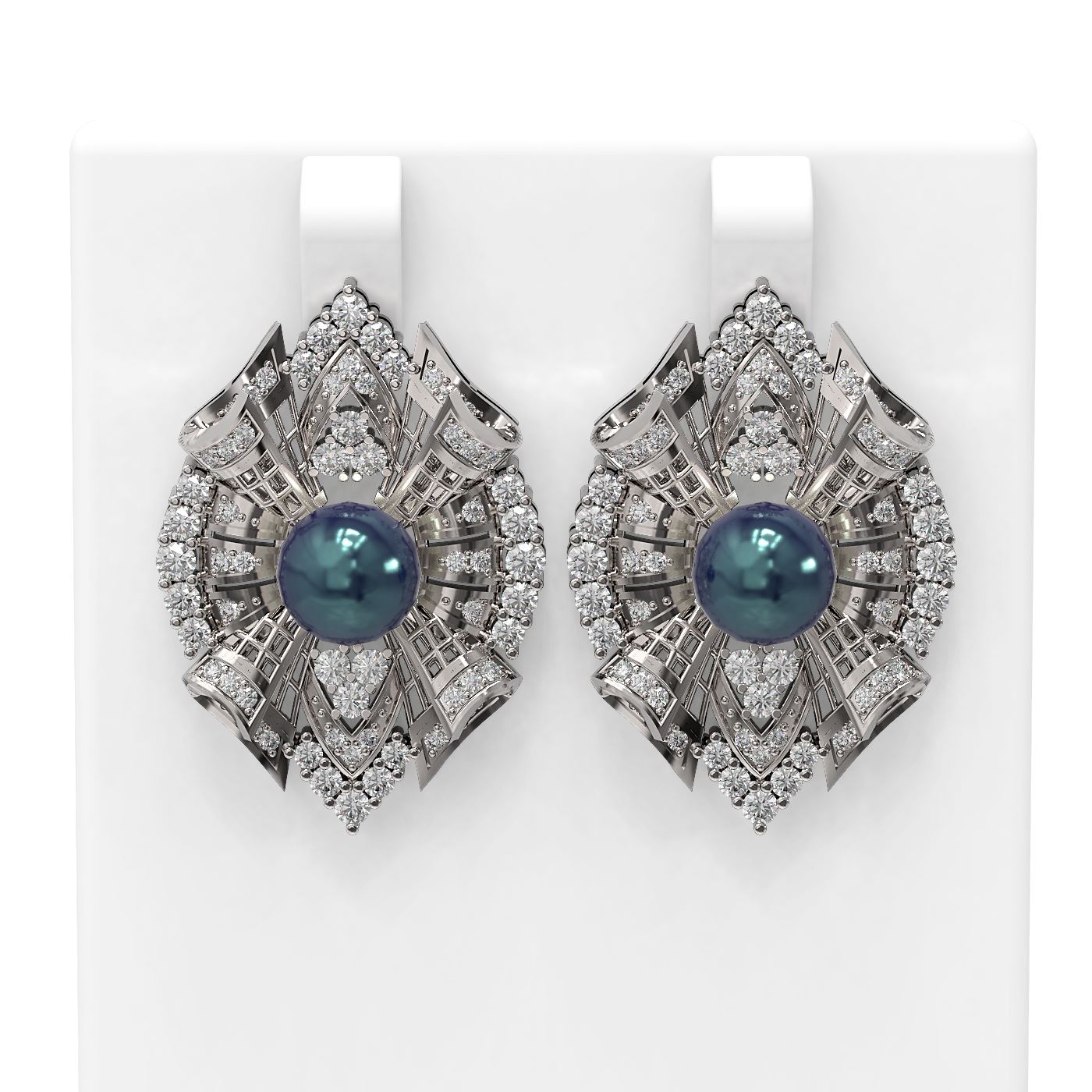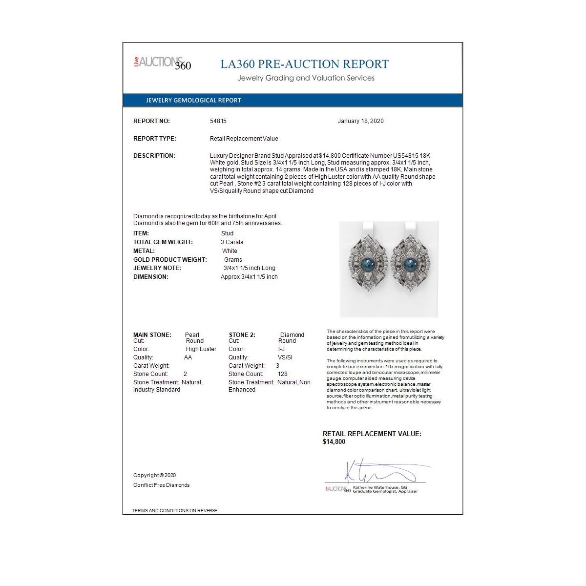 REF-299X3A - SKU: 54815 ---- 3 ctw Diamond & Pearl Earrings 18K White Gold