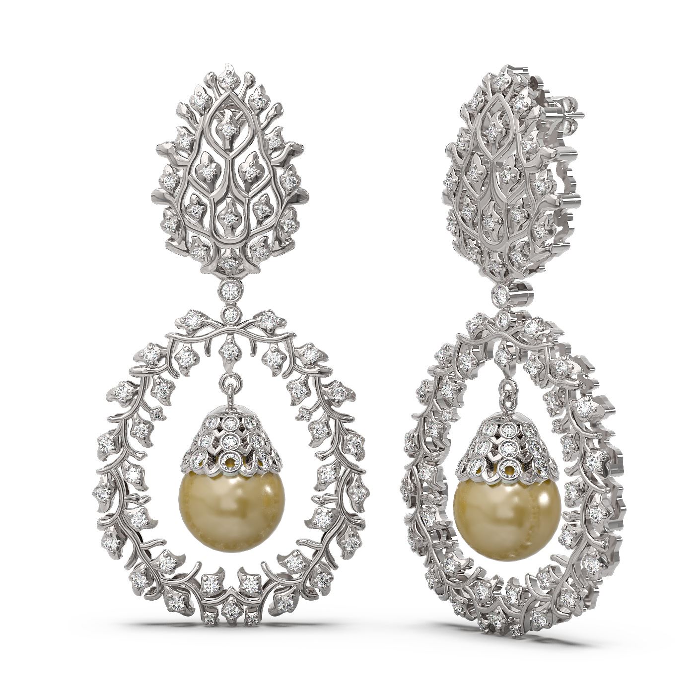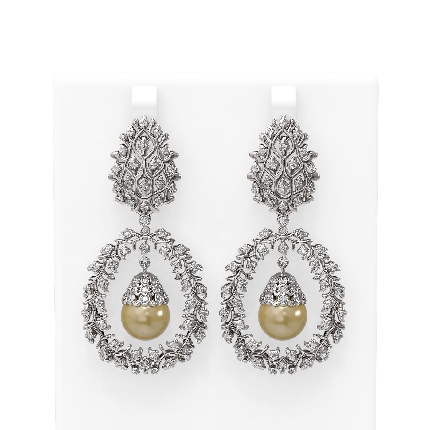 REF-367K6Y - SKU: 55121 ---- 3 ctw Diamond & Pearl Earrings 18K White Gold