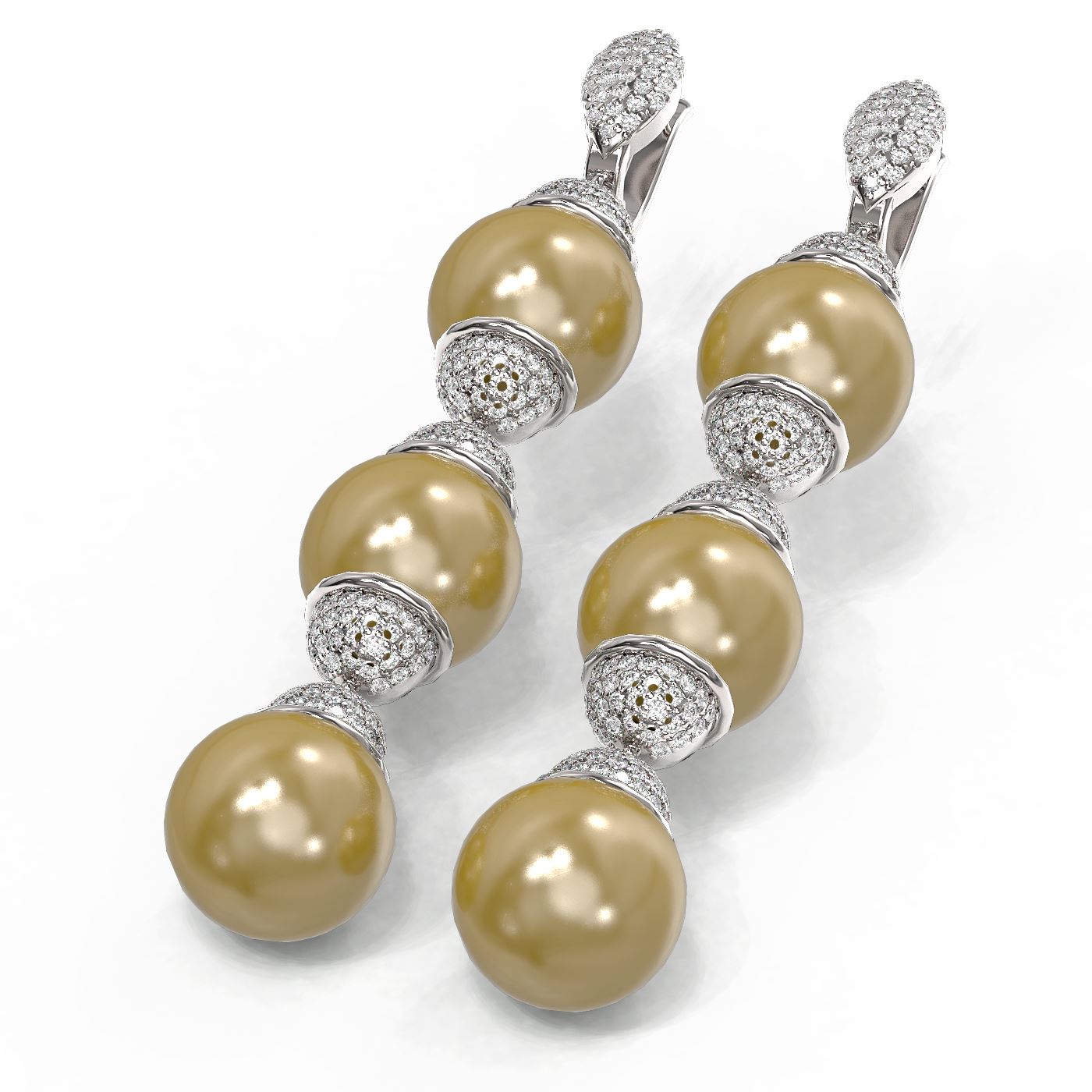 SKU: 55382 ---- 3 ctw Diamond & Pearl Earrings 18K White Gold