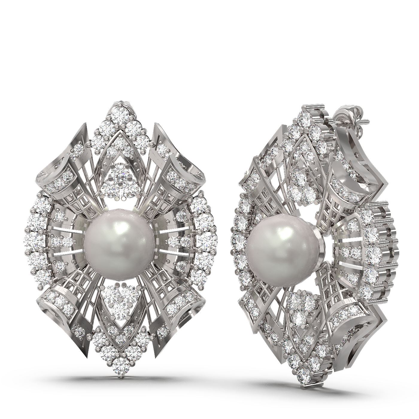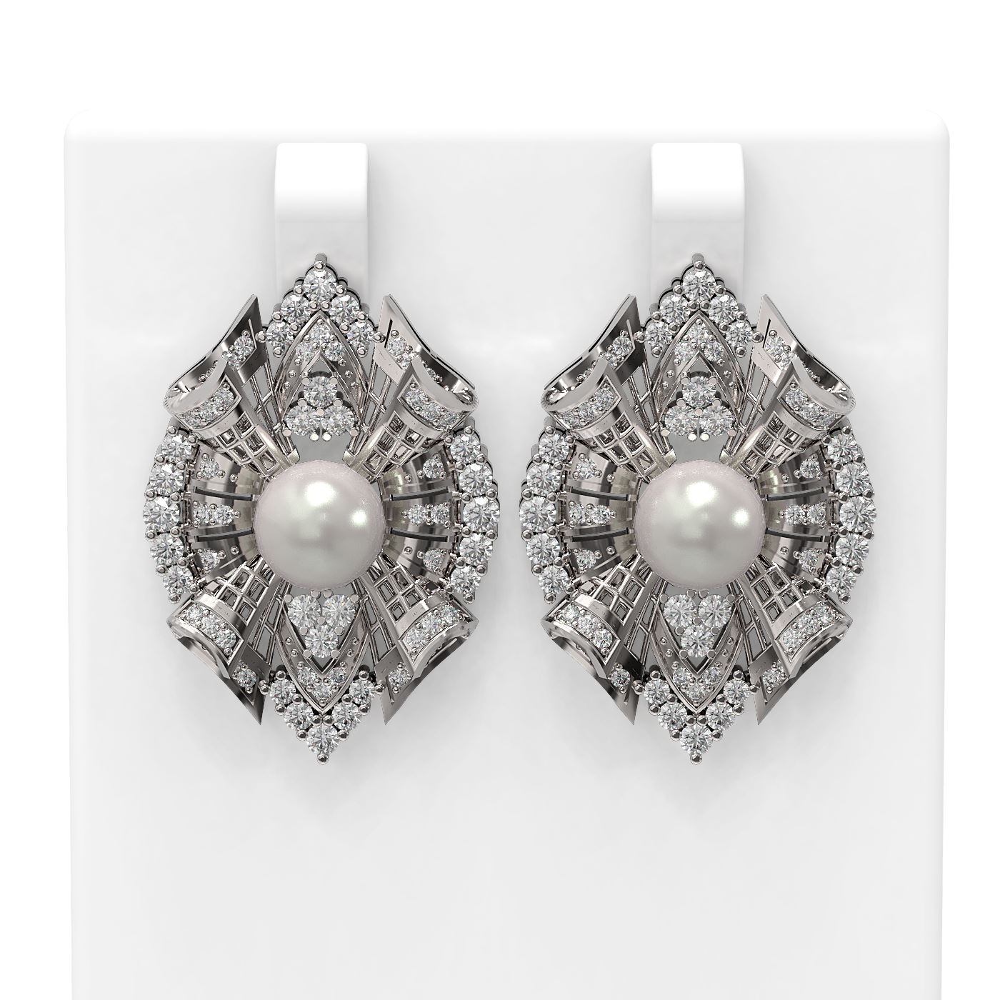 SKU: 54818 ---- 3 ctw Diamond & Pearl Earrings 18K White Gold