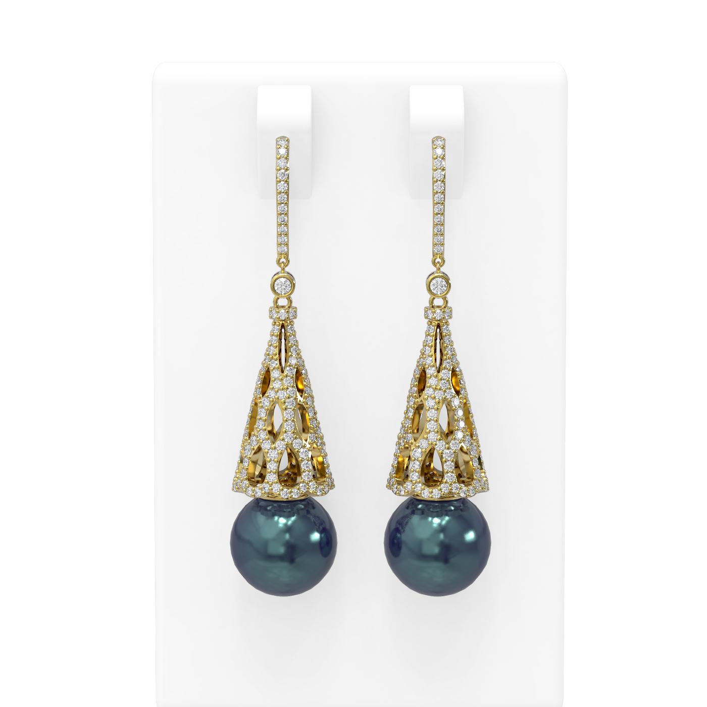 REF-290Y9X - SKU: 61060 ---- 3 ctw Diamond & Pearl Earrings 18K Yellow Gold