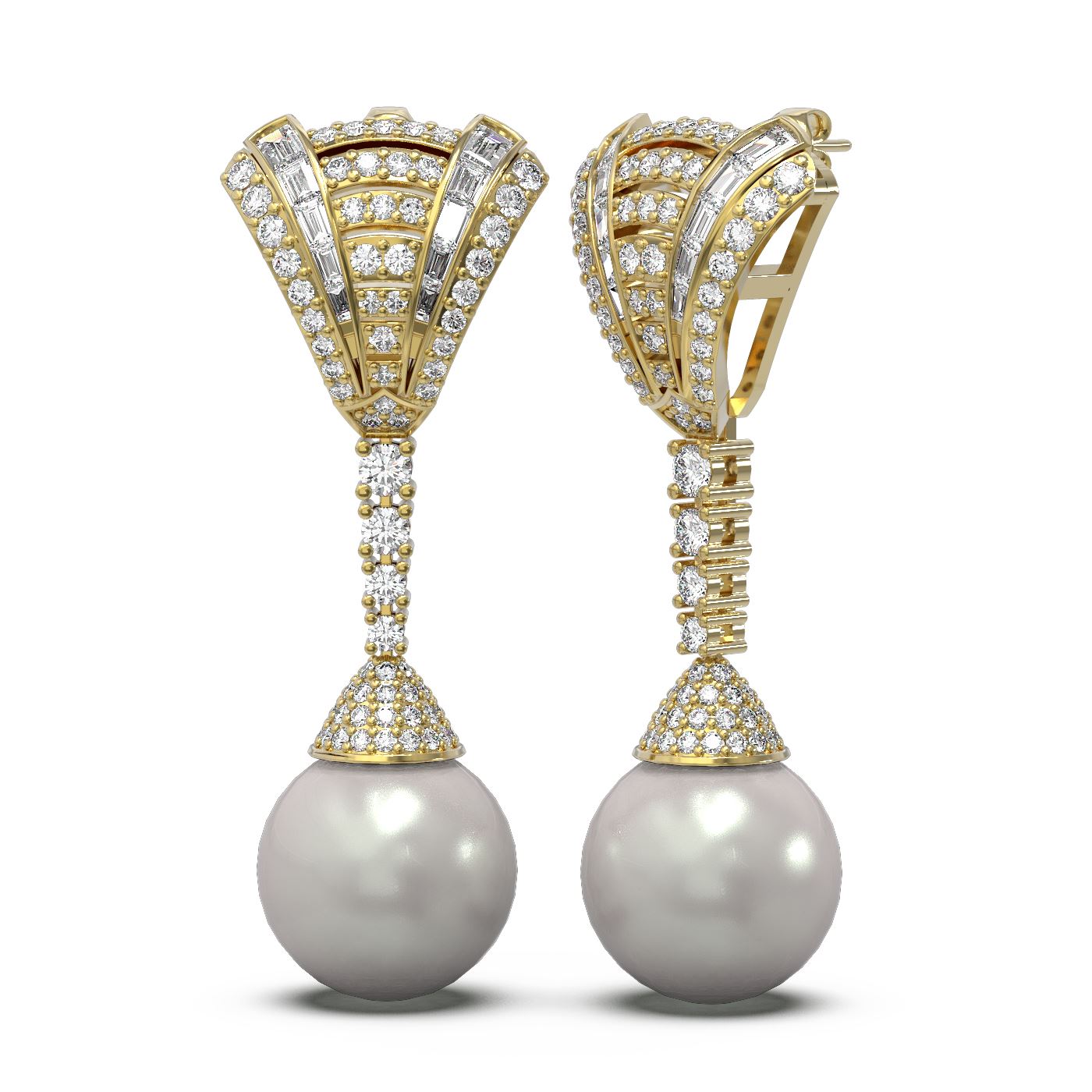 SKU: 55594 ---- 3 ctw Diamond & Pearl Earrings 18K Yellow Gold