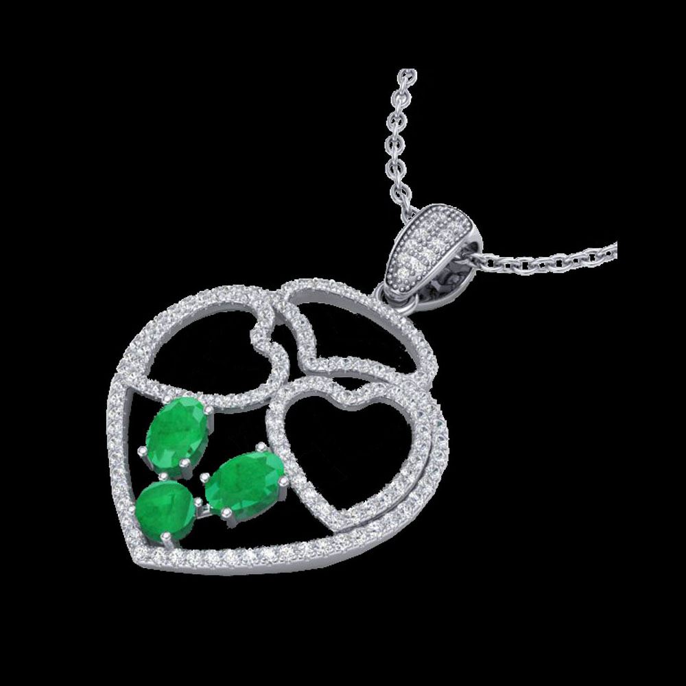 3 ctw Emerald & Micro Pave Designer Heart Necklace 14K White Gold
