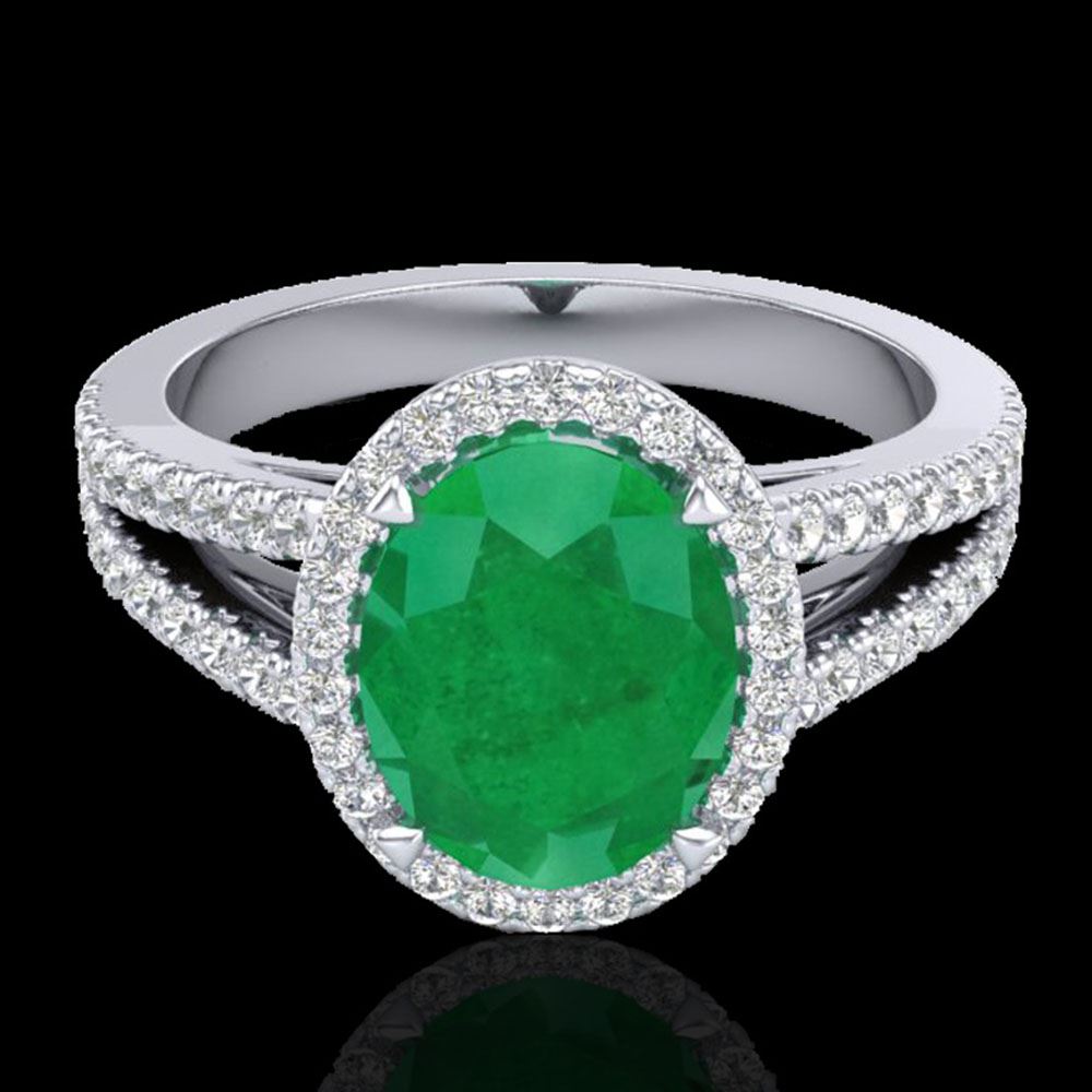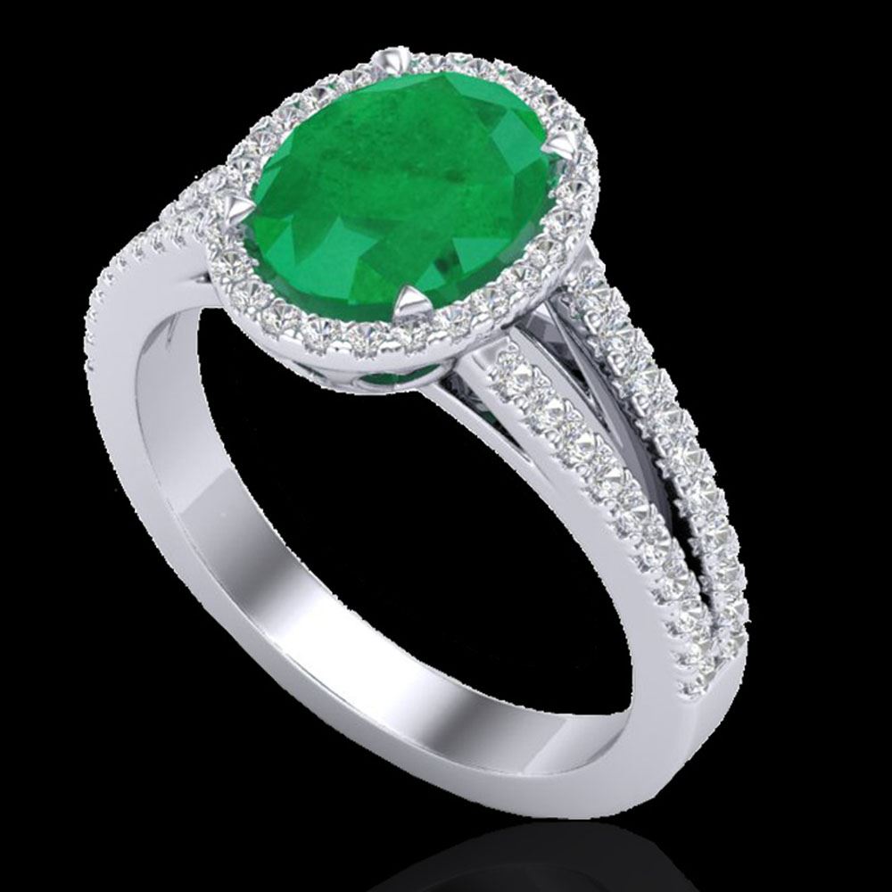 REF-83A6N - SKU: 20938 ---- 3 ctw Emerald & Micro VS/SI Diamond Halo Solitaire Ring 18k White Gold