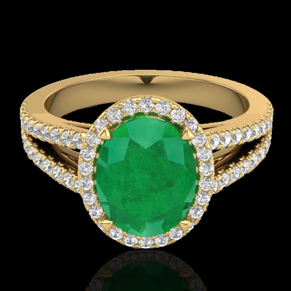 REF-83F6M - SKU: 20939 ---- 3 ctw Emerald & Micro VS/SI Diamond Halo Solitaire Ring 18k Yellow Gold