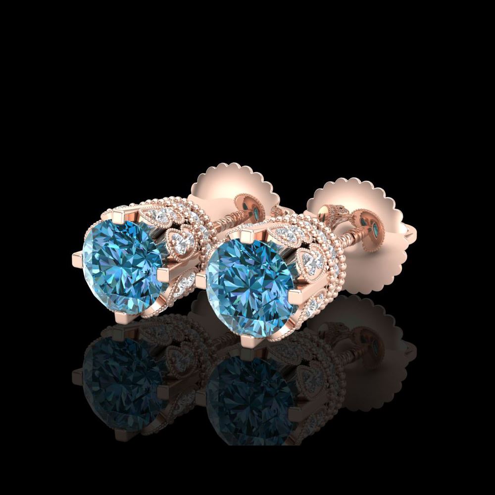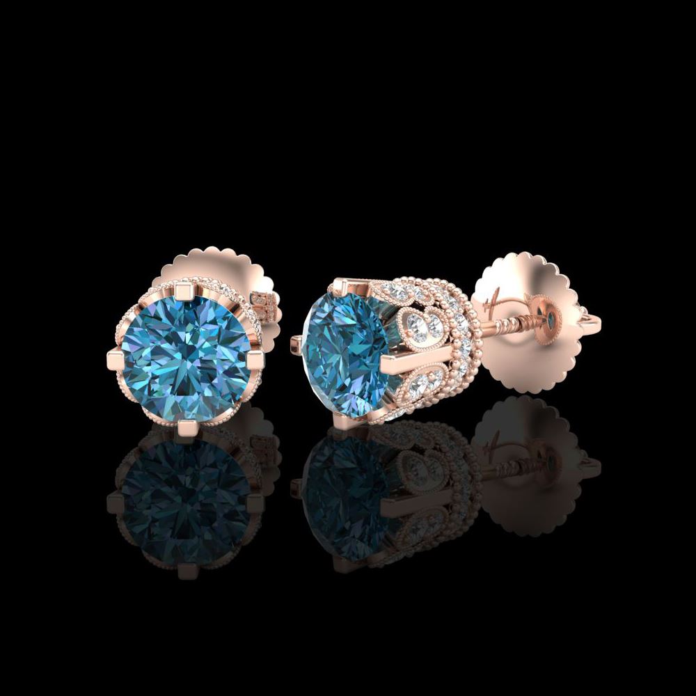 3 ctw Fancy Intense Blue Diamond Art Deco Earrings 18K Rose Gold