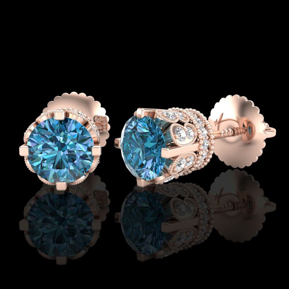 REF-349W3H - SKU: 37363 ---- 3 ctw Fancy Intense Blue Diamond Art Deco Earrings 18k Rose Gold