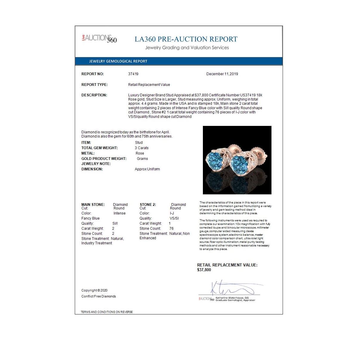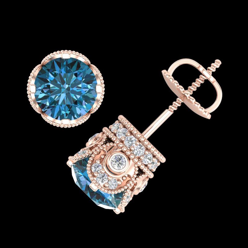 REF-572R8K - SKU: 37419 ---- 3 ctw Fancy Intense Blue Diamond Art Deco Earrings 18k Rose Gold