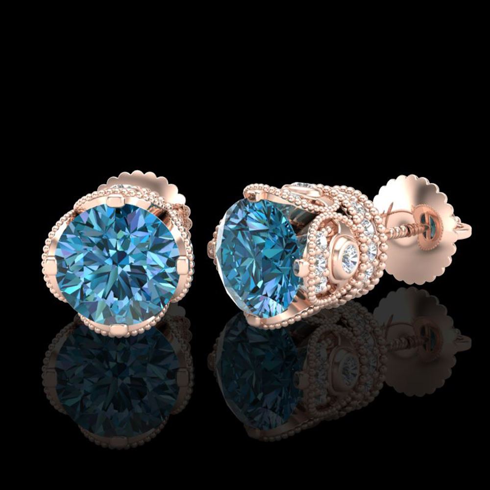 REF-572R8K - SKU: 37419 ---- 3 ctw Fancy Intense Blue Diamond Art Deco Earrings 18k Rose Gold