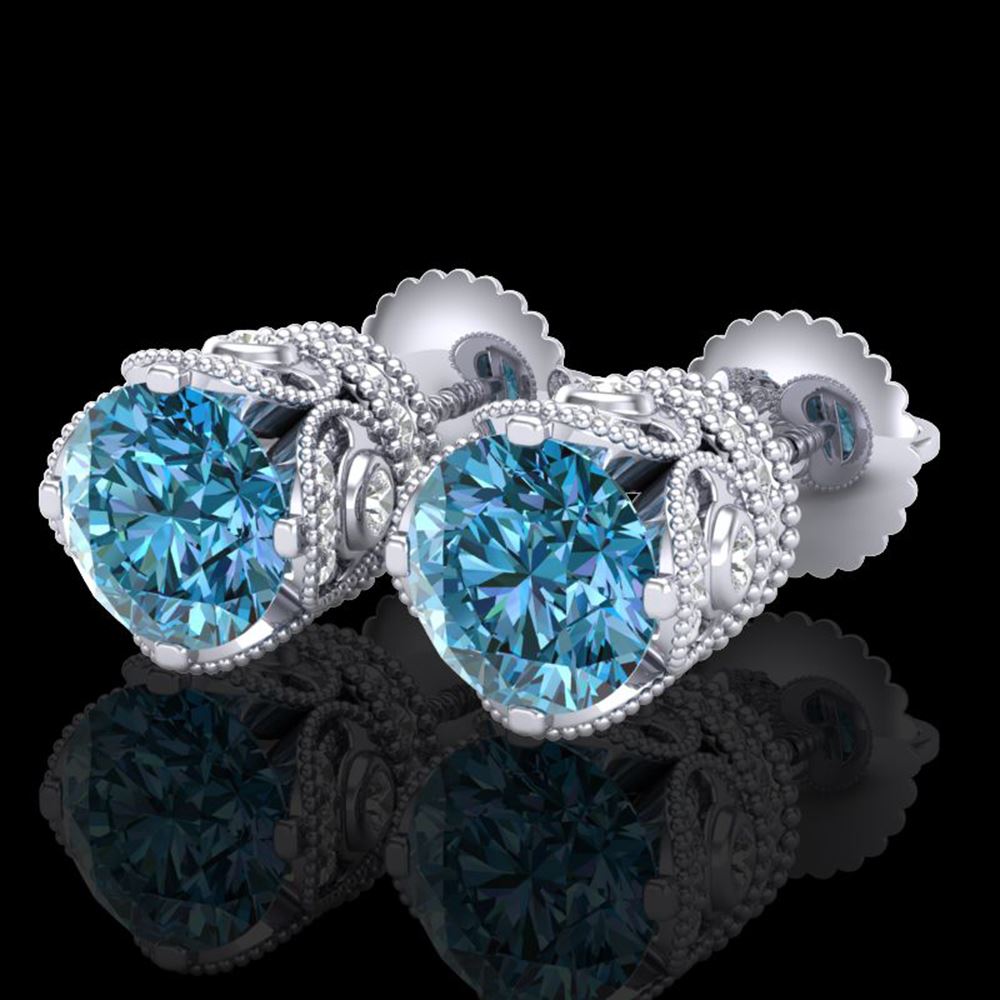 REF-572W8H - SKU: 37418 ---- 3 ctw Fancy Intense Blue Diamond Art Deco Earrings 18k White Gold