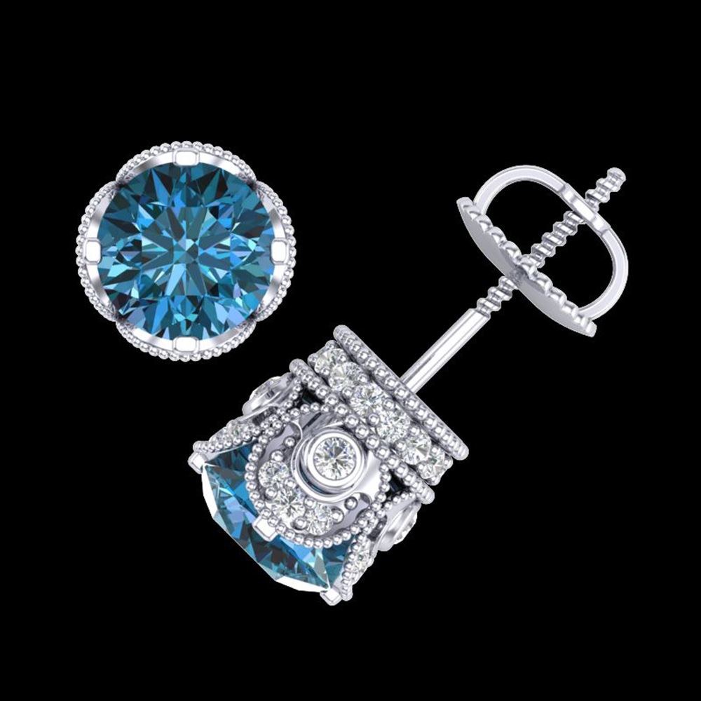 REF-572W8H - SKU: 37418 ---- 3 ctw Fancy Intense Blue Diamond Art Deco Earrings 18k White Gold