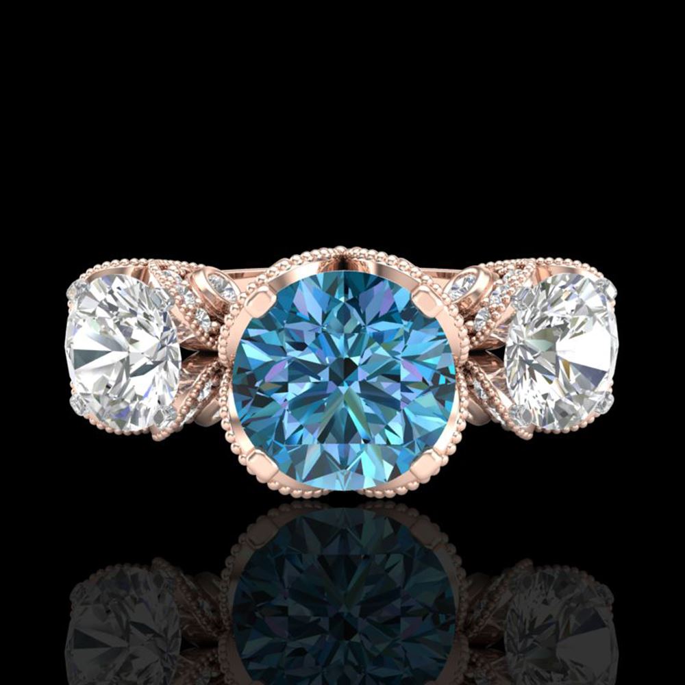 REF-418R2K - SKU: 37433 ---- 3 ctw Fancy Intense Blue Diamond Art Deco Ring 18k Rose Gold