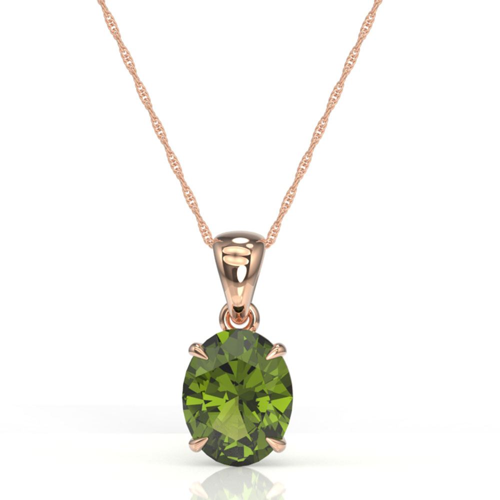 REF-32A3N - SKU: 21865 ---- 3 ctw Green Tourmaline Designer Solitaire Necklace 14k Rose Gold
